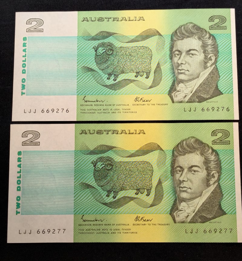 Two Consecutive Two Dollar Bank Notes Includes Johnston/ Fraser Signed, Ljj 669277 And Llj 669276 Prefix