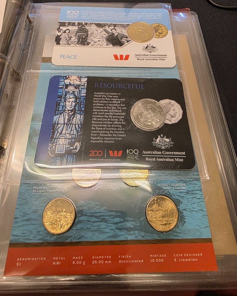 COLLECTION OF AUSTRALIAN COMMEMORATIVE WAR + ANZAC COINS