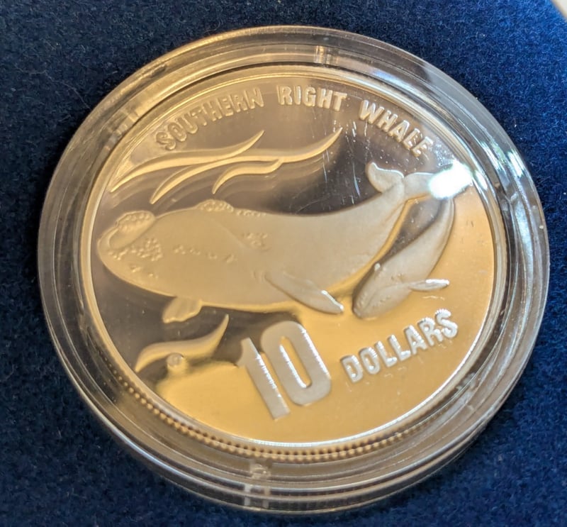 1996 AUSTRALIA'S ENDANGERED SPECIES - SOUTHERN RIGHT WHALE $10 PROOF COIN