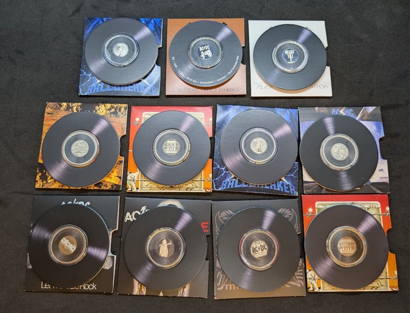 AC/DC ELEVEN COIN SET STUDIO ALBUM COMMEMORATIVE COIN SERIES