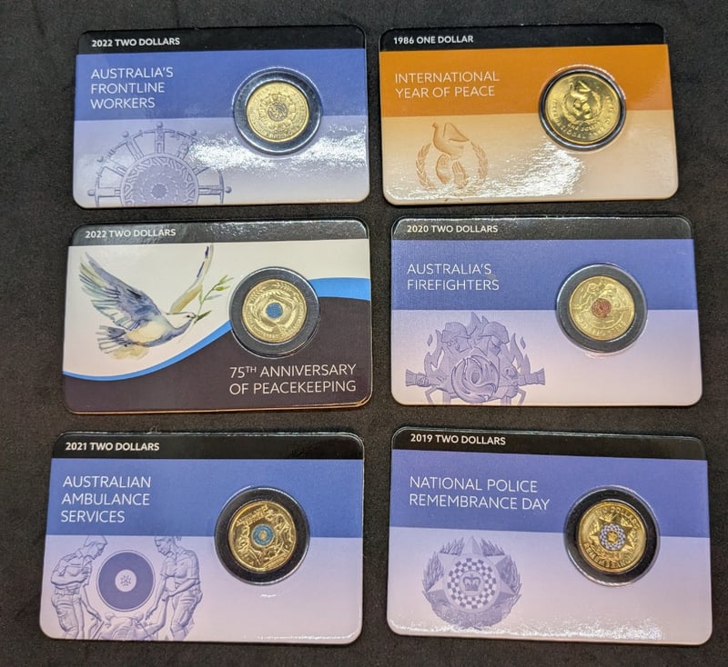 AUSTRALIAN TWO DOLLAR & ONE DOLLAR COMMEMORATIVE COINS (1986-2022)A Curated Collection Of Australian Commemorative Coins Spanning 1986 To 2022, Featuring Significant National And Professional Frontline WorkersCondition: Unc585090+28