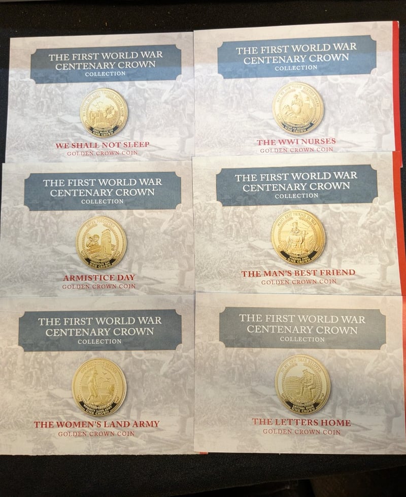THE FIRST WORLD WAR CENTENARY CROWN COLLECTION - COMPLETE 18-COIN GOLDEN CROWN SET