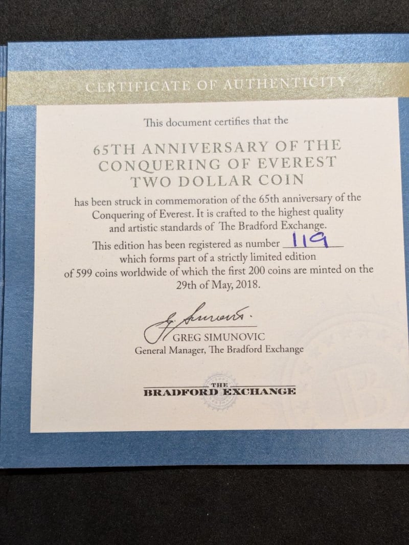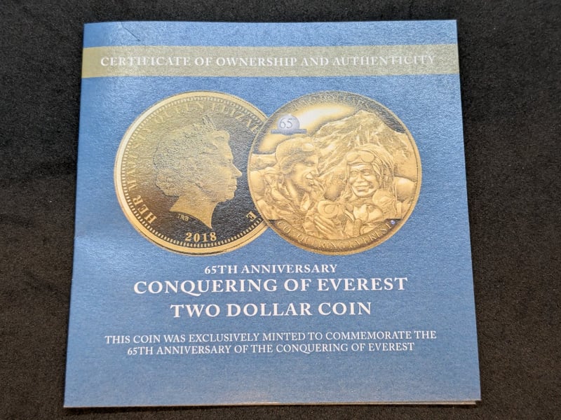 2018 LIMITED EDITION 65TH ANNIVERSARY CONQUERING OF EVEREST TWO DOLLAR COIN
