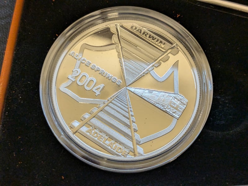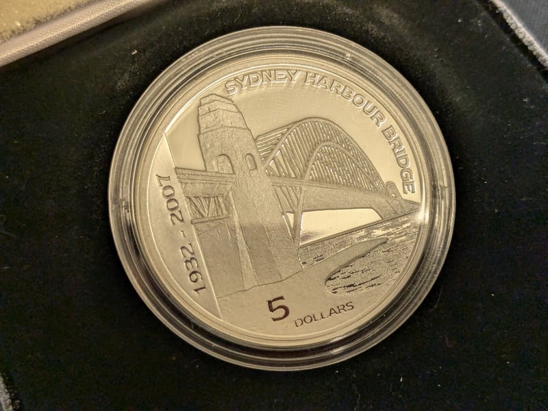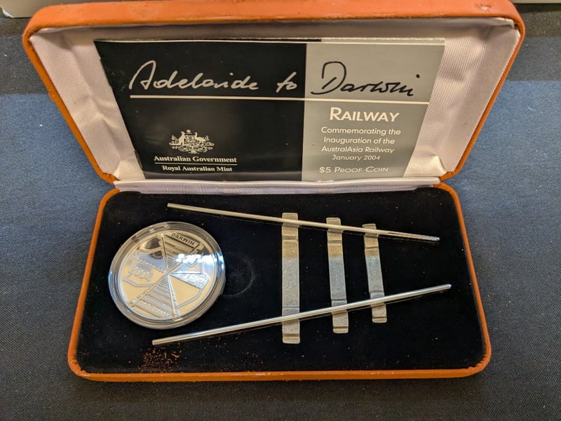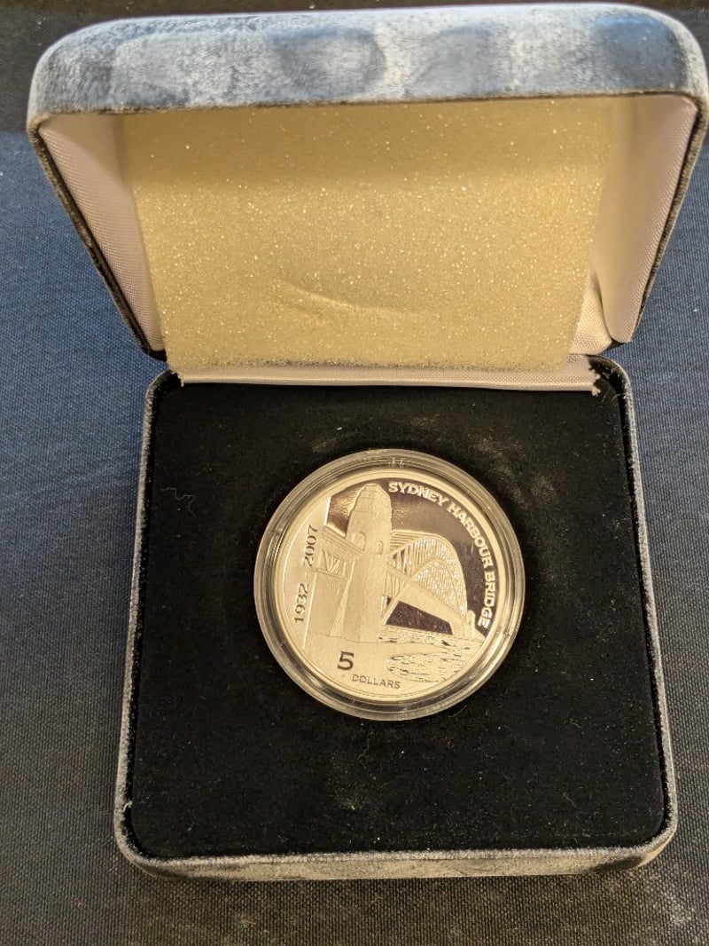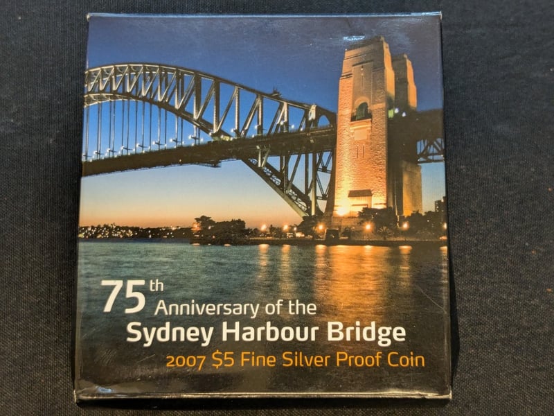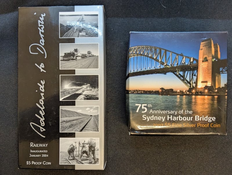 2004 ADELAIDE TO DARWIN RAILWAY COMMEMORATIVE $5 FINE SILVER PROOF COIN AND 2007 75TH ANNIVERSARY FOR SYDNEY HARBOUR BRIDGE FIVE DOLLAR PROOF COIN Condition: Proof Provenance: Royal Australian Mint 585090+95