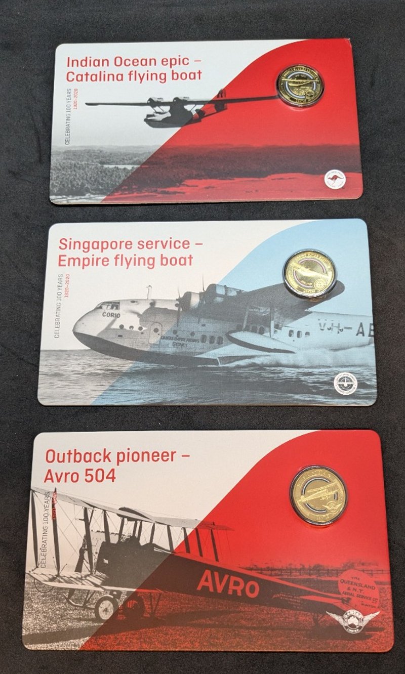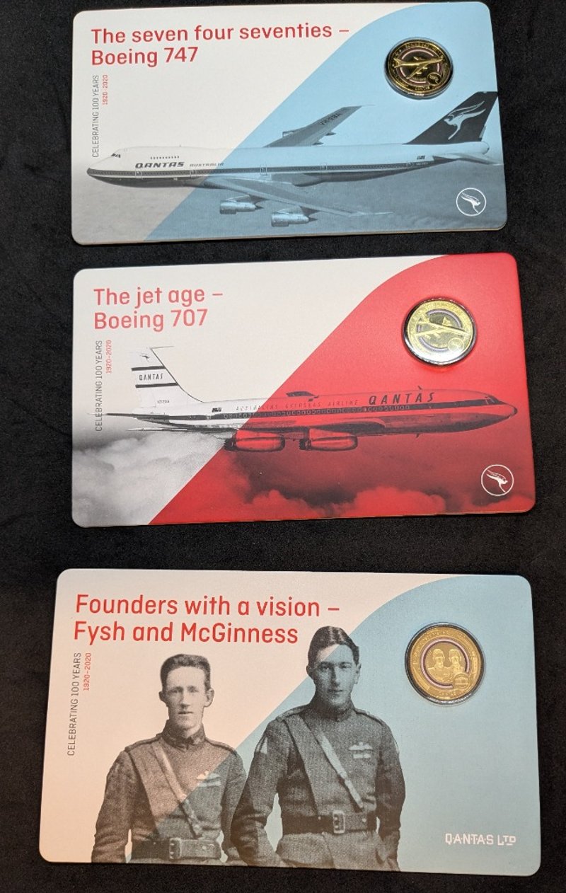 2020 QANTAS CENTENARY 11 COIN BOXED SET, UNCIRCULATED ONE DOLLAR COINS