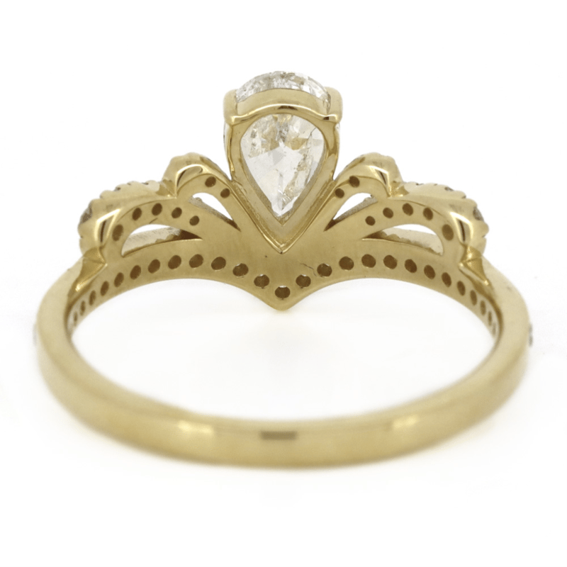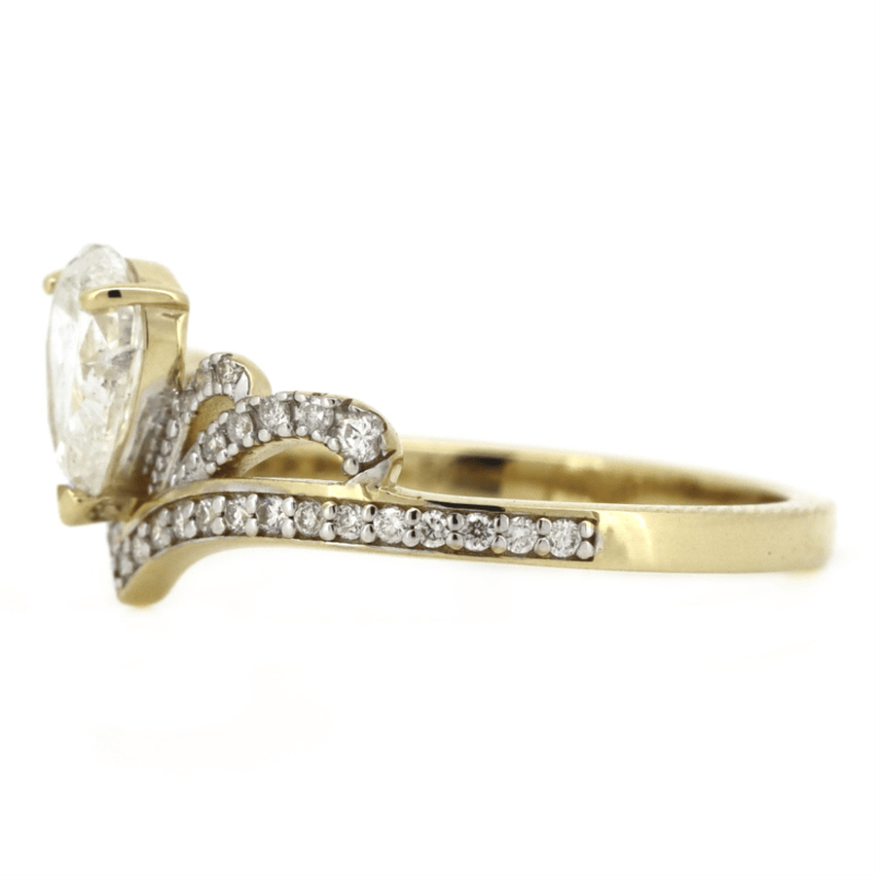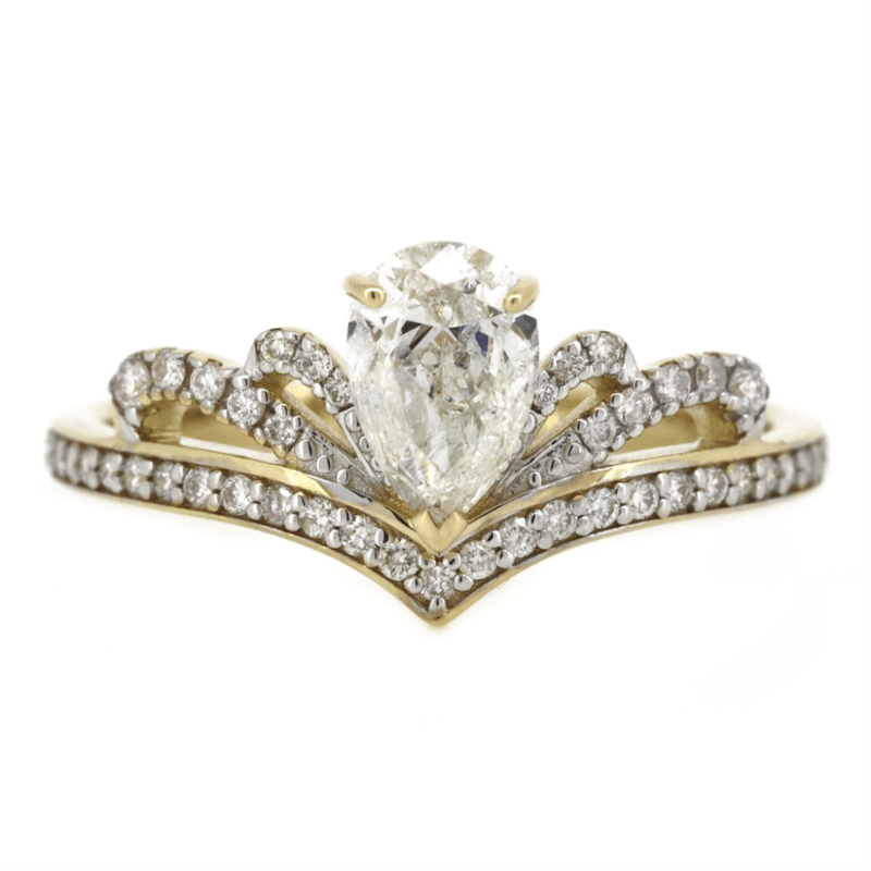 The Centre Features, One Pear Brilliant Cut, Diamond (0.73Ct, H Colour, I2 Clarity), 3 Claw Basket Setting. Decorating The Band Are, 43 Round Brilliant Cut, Diamonds (0.21Ct Tdw, G-J Colour, Si-I2 Clarity), Each Set In A Bead Setting. Ring Size N.