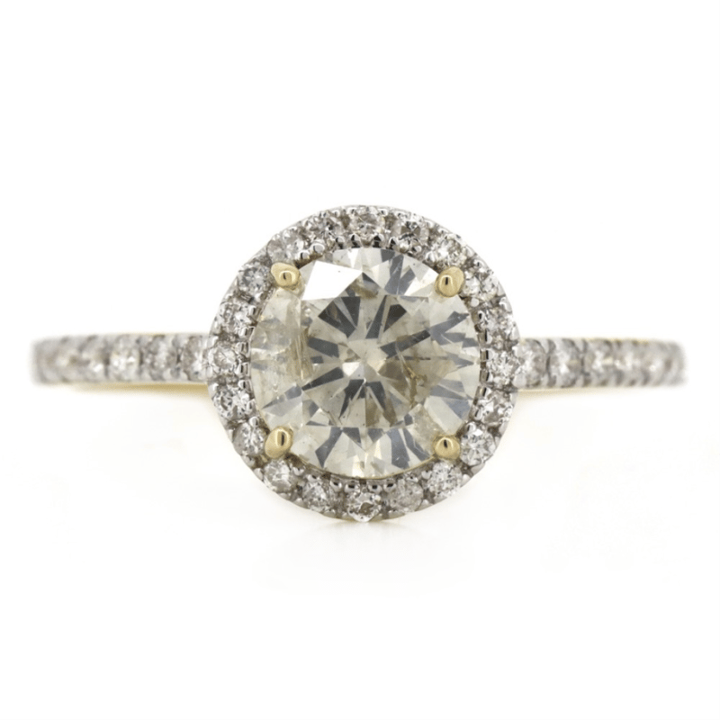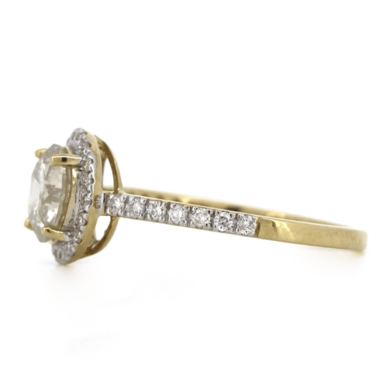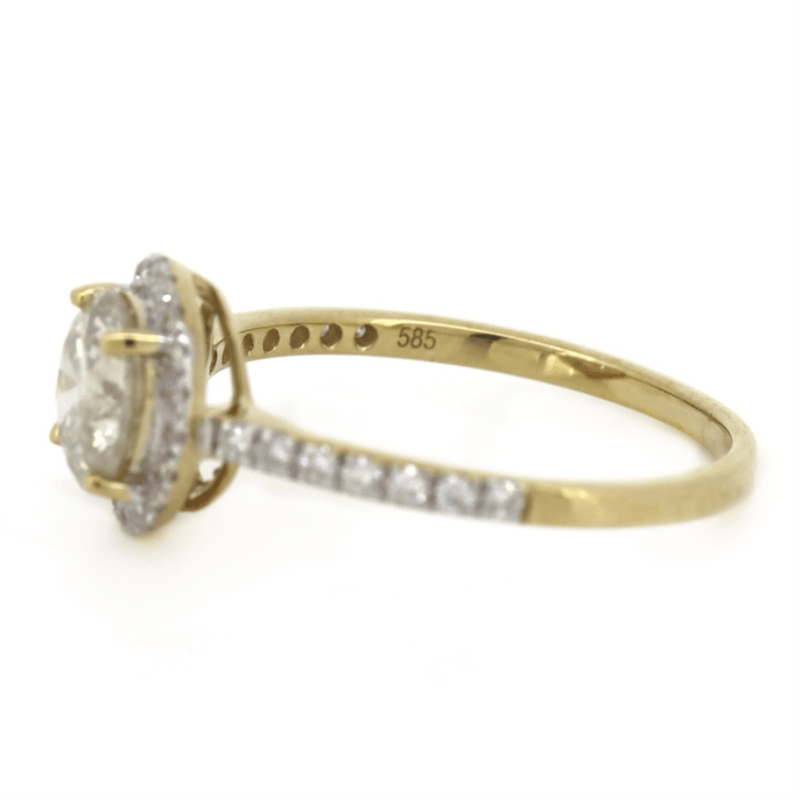 14K YELLOW GOLD AND DIAMOND, HALO RING.