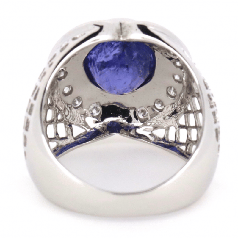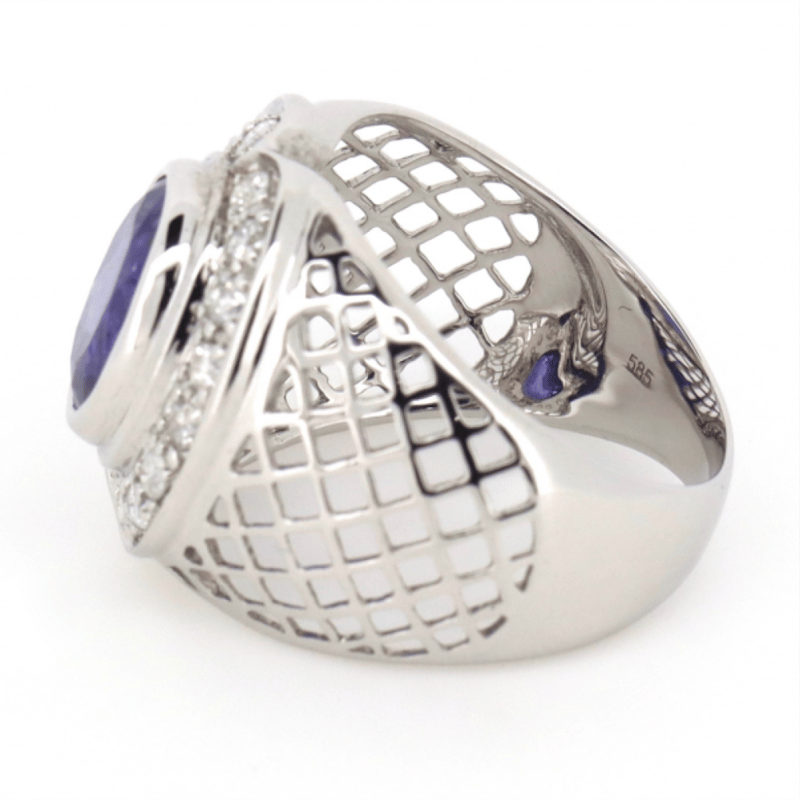 14K WHITE GOLD, TANZANITE AND DIAMOND, GENTS RING.