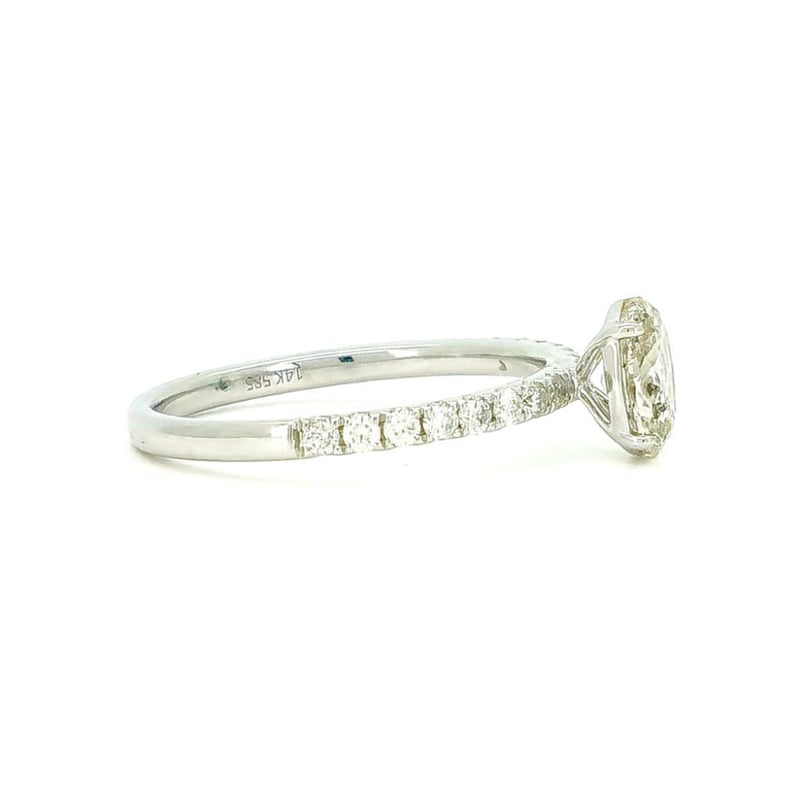 14CT WHITE GOLD DIAMOND DRESS RING Featuring Centre, One Oval Brilliant Cut Diamond (0.84Ct, L Colour, I3 Clarity), Claw Set, With 16 Round Brilliant Cut Diamonds (0.28Ct Tdw, I-J Colour, Si2-I2 Clarity), Bead Set. Ring Size O. Valuations Provided by an Independent Third-Party Professional Not Directly Associated With Lloyds Auctions at AUD $16200This valuation has been conducted by an independent third-party professional. The valuation amount is an assessment by the issuing valuer and does not reflect the auction value of the item. Any inquiries regarding the valuation should be directed to the issuing valuer (refer to contact details on the certificate), as Lloyds Auctions has no affiliation or influence over the valuation, the valuer, or the stated amount. Condition: Good - Refer Images 0582890+2010