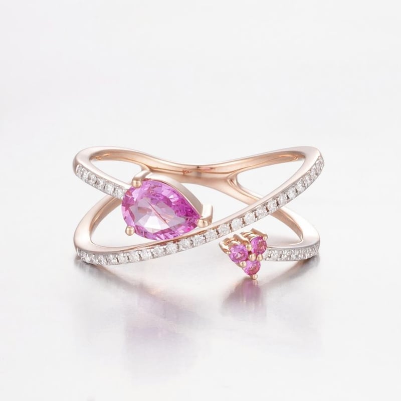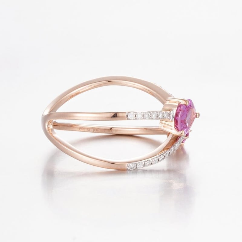 14CT ROSE GOLD PINK CEYLON SAPPHIRE AND DIAMOND SPLIT BAND RING Featuring Centre, One Pear And 3 Round Cut, Moderate Pink Ceylon Sapphires (0.79Ct Tsw, Moderately Included), Bead Set, With 39 Round Brilliant Cut Diamonds (0.16Ct Tdw, G-H Colour, Vs1-Vs2 Clarity), Bead Set. Ring Size O. Valuations Provided by an Independent Third-Party Professional Not Directly Associated With Lloyds Auctions at AUD $14000This valuation has been conducted by an independent third-party professional. The valuation amount is an assessment by the issuing valuer and does not reflect the auction value of the item. Any inquiries regarding the valuation should be directed to the issuing valuer (refer to contact details on the certificate), as Lloyds Auctions has no affiliation or influence over the valuation, the valuer, or the stated amount. Condition: Good - Refer Images 0582890+2026