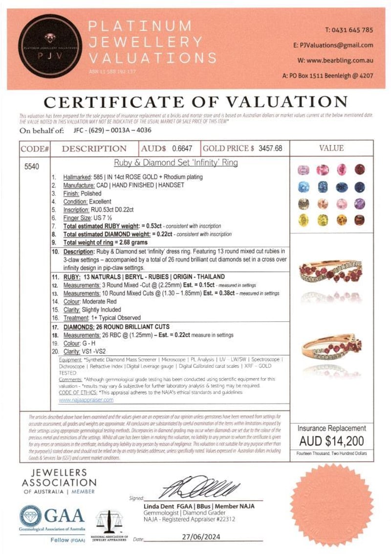 14CT ROSE GOLD RUBY AND DIAMOND DRESS RING