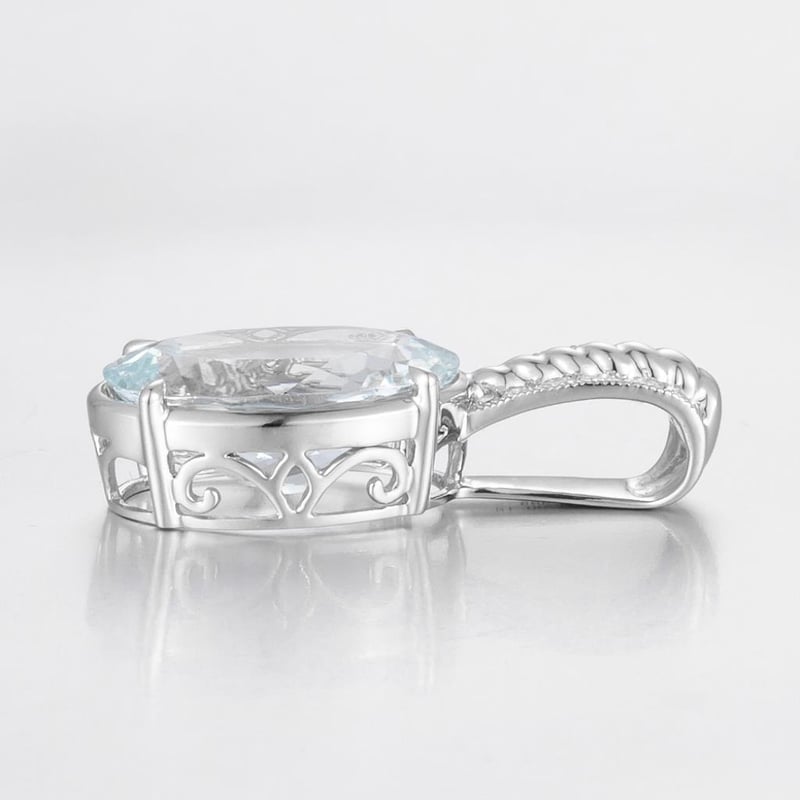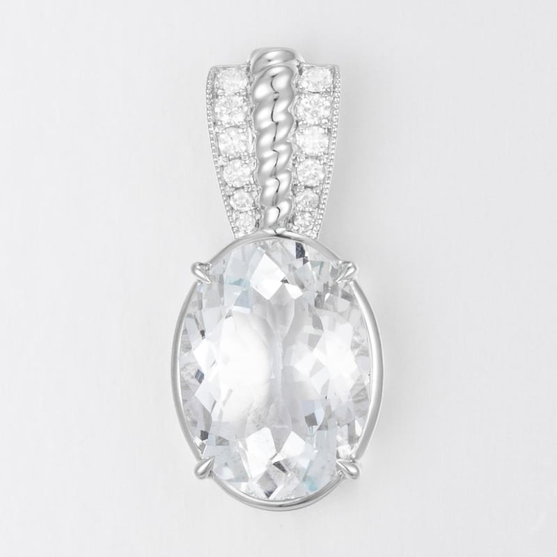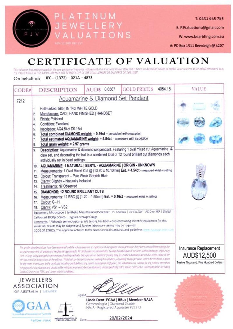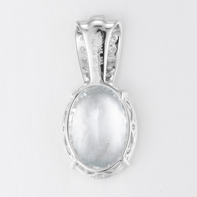 14CT WHITE GOLD AQUAMARINE AND DIAMOND PENDANT