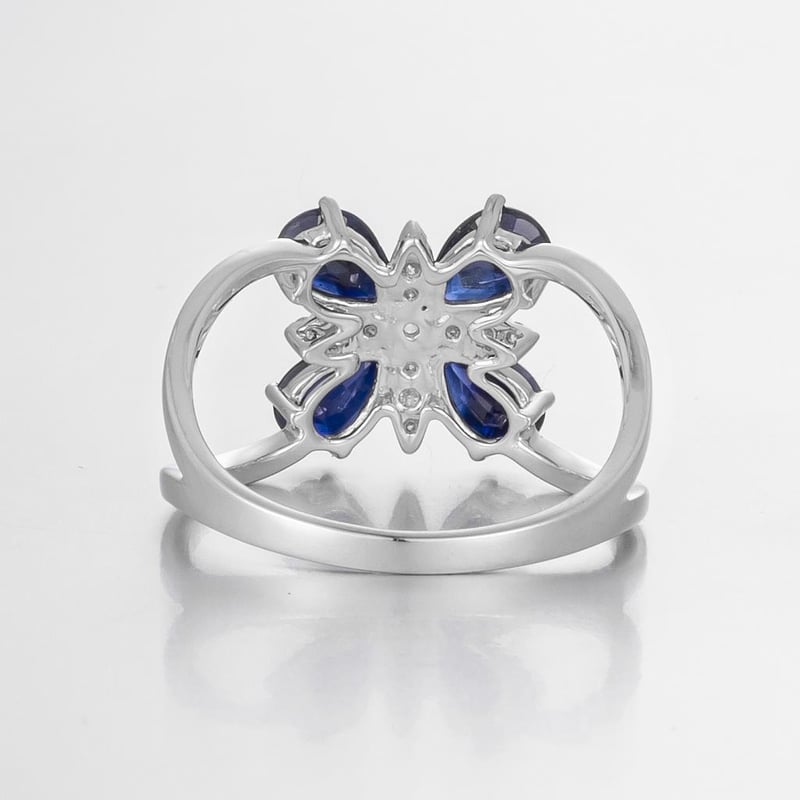 Featuring Centre, 4 Pear Cut, Deep Blue Black Australian Sapphires (1.62Ct Tsw, Heavily Included), Claw Set, With 13 Round Brilliant Cut Diamonds (0.15Ct Tdw, F-G Colour, Vs2 Clarity), Claw Set. Ring Size O.