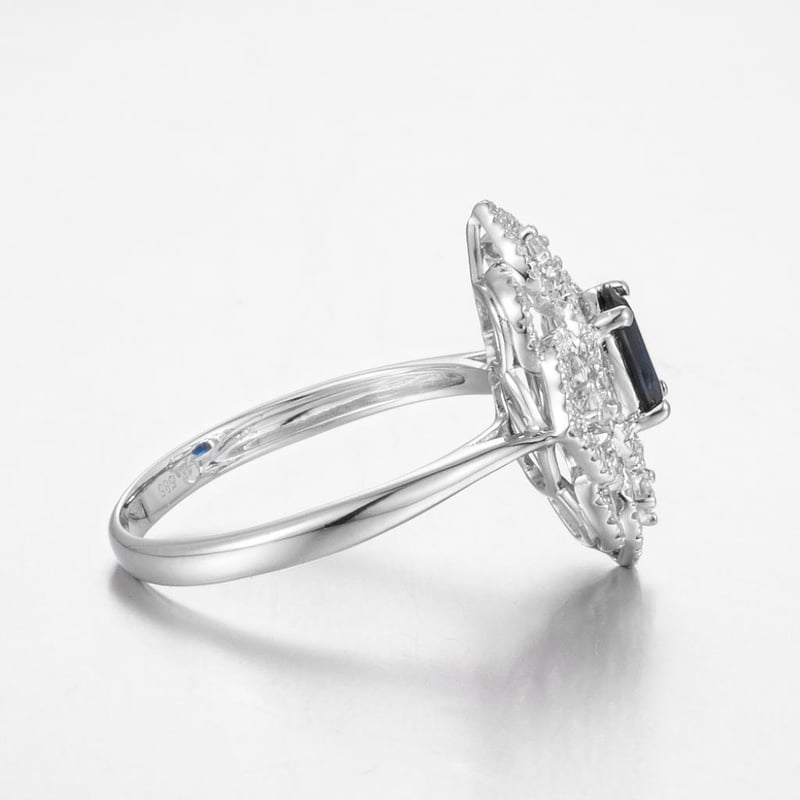 14CT WHITE GOLD SAPPHIRE AND DIAMOND CLUSTER RING