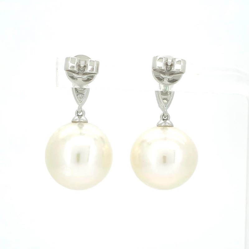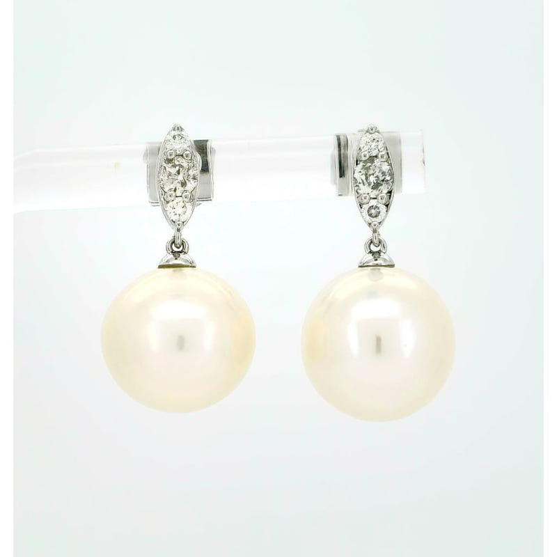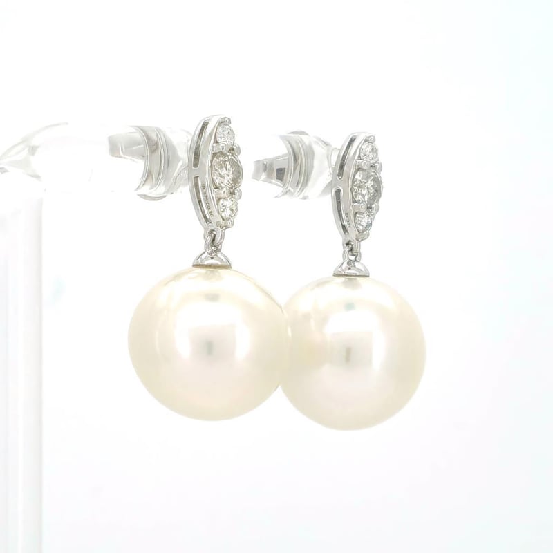 9CT WHITE GOLD SOUTH SEA PEARL AND DIAMOND DROP EARRINGS