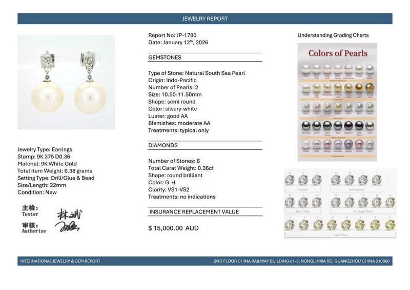 Featuring, 2 Silvery-White South Sea Pearls (10.50-11.50Mm Size, Aa Grade), With 6 Round Brilliant Cut Diamonds (0.36Ct Tdw, G-H Colour, Vs1-Vs2 Clarity), Bead Set.