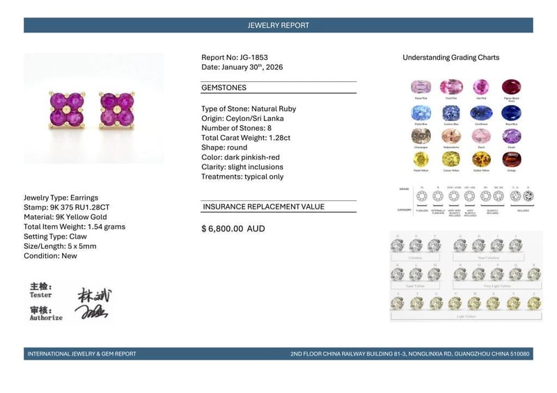 9CT YELLOW GOLD CEYLON RUBY FLORAL STUD EARRINGS Featuring, 8 Round Cut, Dark Pinkish-Red Ceylon Rubies (1.28Ct Tsw, Slight Inclusions), Claw Set. Valuations Provided by an Independent Third-Party Professional Not Directly Associated With Lloyds Auctions at AUD $6800This valuation has been conducted by an independent third-party professional. The valuation amount is an assessment by the issuing valuer and does not reflect the auction value of the item. Any inquiries regarding the valuation should be directed to the issuing valuer (refer to contact details on the certificate), as Lloyds Auctions has no affiliation or influence over the valuation, the valuer, or the stated amount. Condition: Good - Refer Images 0582890+2015