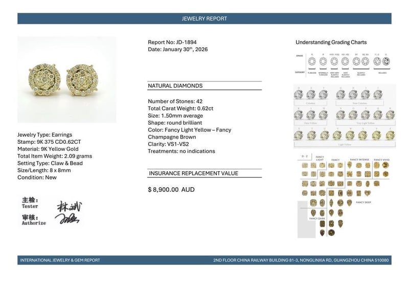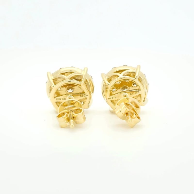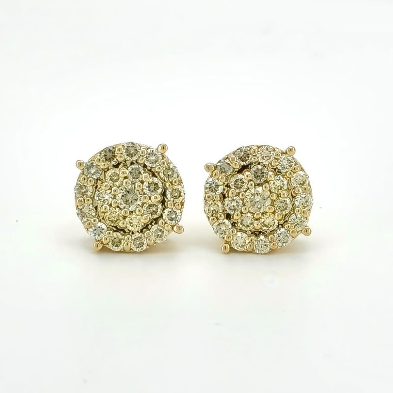 9CT YELLOW GOLD FANCY YELLOW AND CHAMPAGNE BROWN DIAMOND HALO STUD EARRINGS