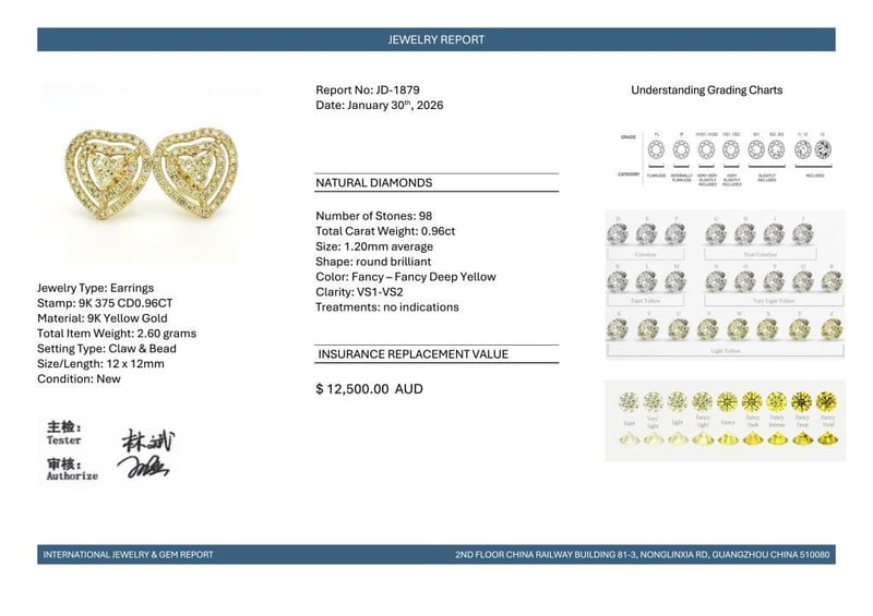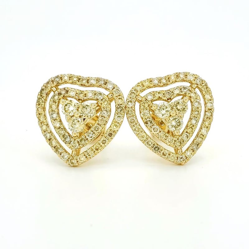 9CT YELLOW GOLD FANCY YELLOW DIAMOND HEART STUD EARRINGS