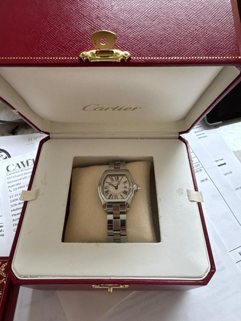 CARTIER ROADSTER LADIES WATCH Brand: Cartier Model Number: roadster Reference Number: w62016v3 Dial: silver Case: steel Bracelet: steel Movement: quartz Condition: Good - Refer to Images 163098+1