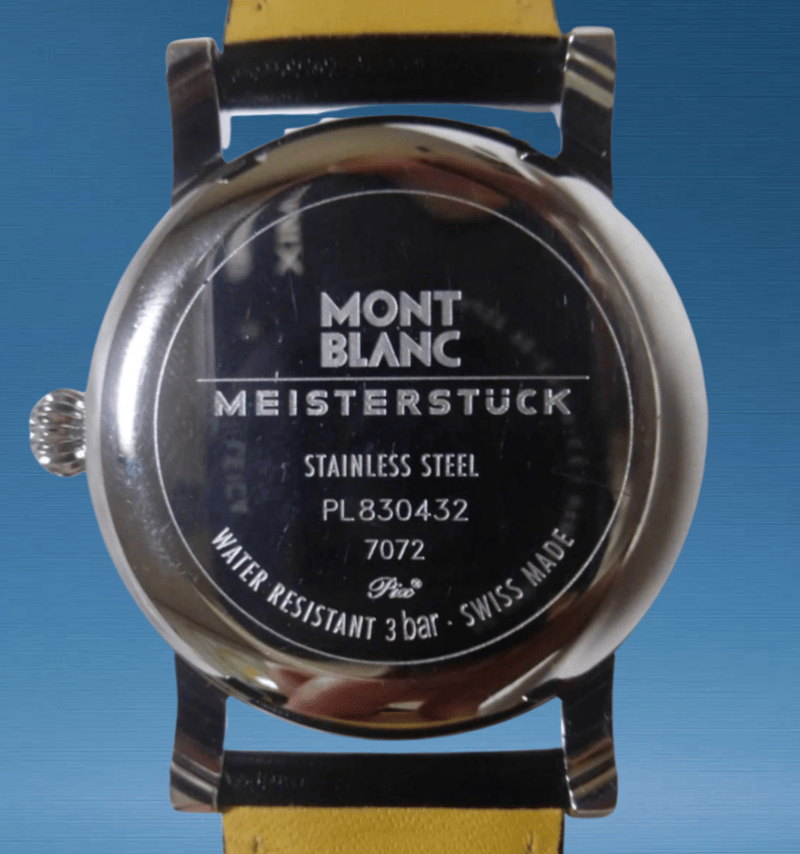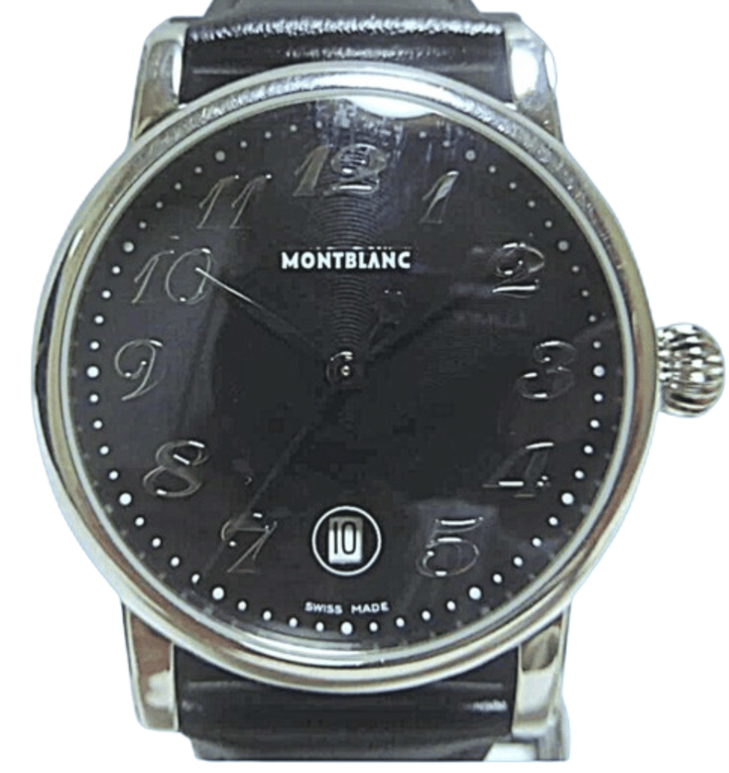 MONTBLANC 7072 MEISTERSTUCK DATE 40MM BLACK GUILLOCHE DIAL Brand: Montblanc Model Number: Meisterstuck Date Reference Number: 7072 Production Year: UNKNOWN Dial: BLACK Guilloche dial Case: STEEL Case Size: 40MM Bracelet: LEATHER Movement: QUARTZ Box: Not IncludedPapers: Not Included Condition: Good - Refer to Images
