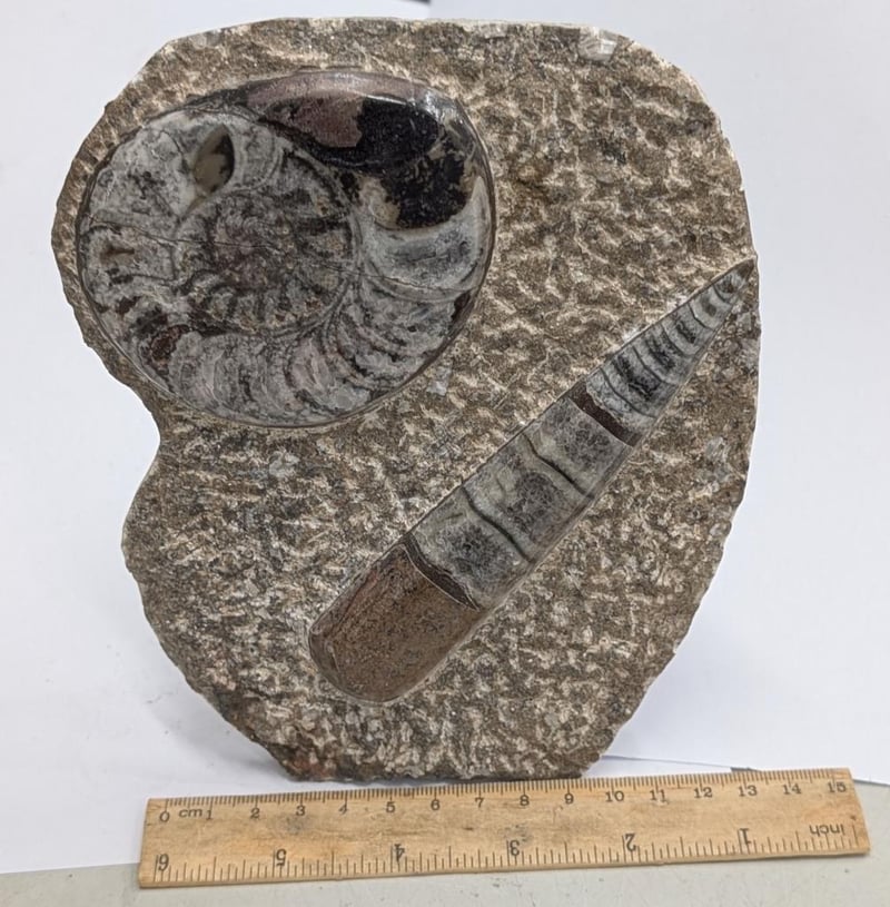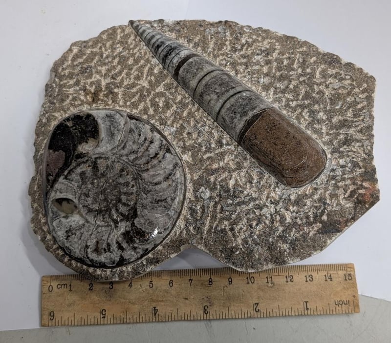 DISPLAY MADE FROM 400 MILLION YEAR OLD FOSSIL FILLED MARBLE FROM MOROCCO