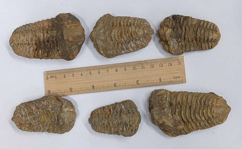 SIX 350 MILLION YEAR OLD TRILOBITE FOSSILS FROM MOROCCO Species Is Calymene. Around 450 Million Years Ago This Critter Was Alive And Crawled Along The Bottom Of A Shallow Sea.Trilobites Were A Type Of Arthropods That Lived In Shallow Seas. One Of The Earliest Known Forms Of Advanced Creatures They Existed From At Least The Early Cambrian (Oldest Known Trilobite Is From 521 Million Years Ago), And They Flourished Throughout The Lower Paleozoic Era Before Beginning A Drawn-Out Decline To Extinction When They Became Extinct In The Mass Extinction At The End Of The Permian About 252 Million Years Ago. Trace Fossils From Pre Cambrian Times Are Also Often Believed To Be From Trilobites But It Is Only A Theory As There Are No Known Pre Cambrian Trilobites - Possibly They Never Had Hard Shells Would Explain That. Either Way Trilobites Are Among The Most Successful Creatures Ever To Inhabit Our Planet - And With More Than 20,000 Known Species They Can Create A Collectible In Their Own Right. Every Fossil Collection Needs Trilobites. Condition: Good - Refer Images 0585084+48