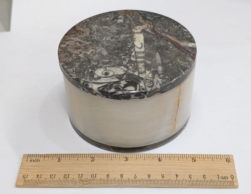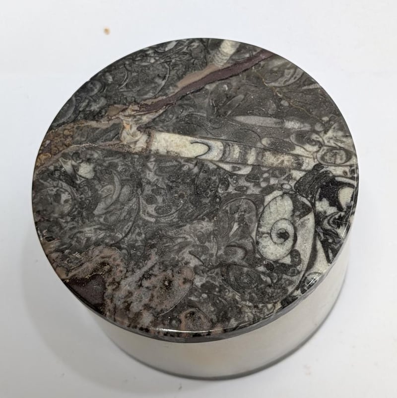 STORAGE BOTTLE MADE FROM 400 MILLION YEAR OLD FOSSIL FILLED MARBLE FROM MOROCCO Condition: Good - Refer Images 0 585084+55