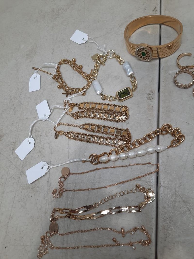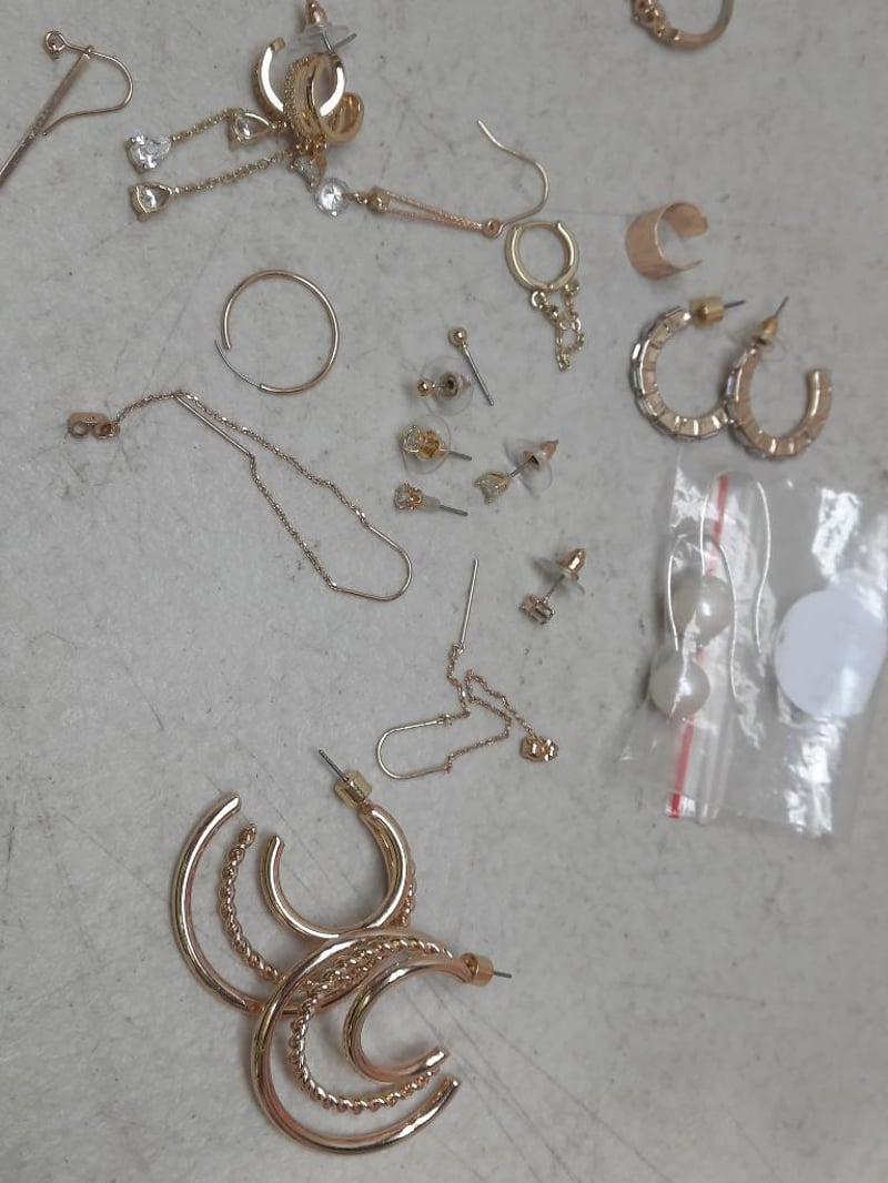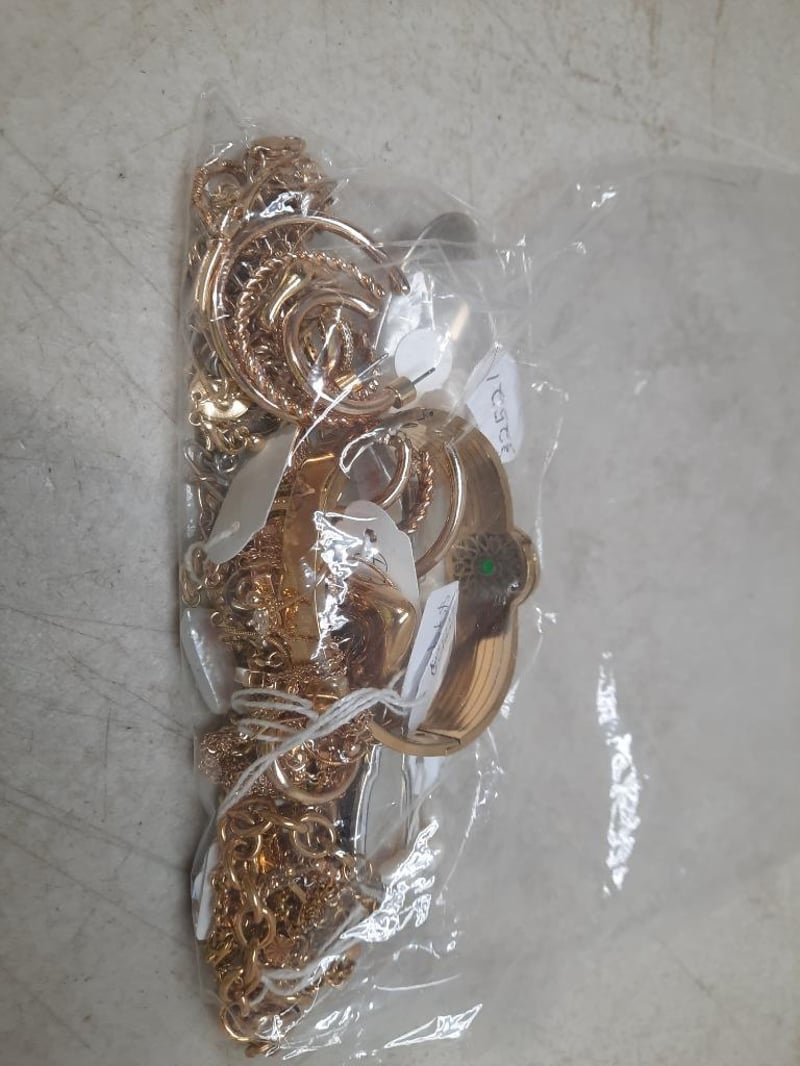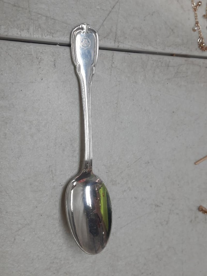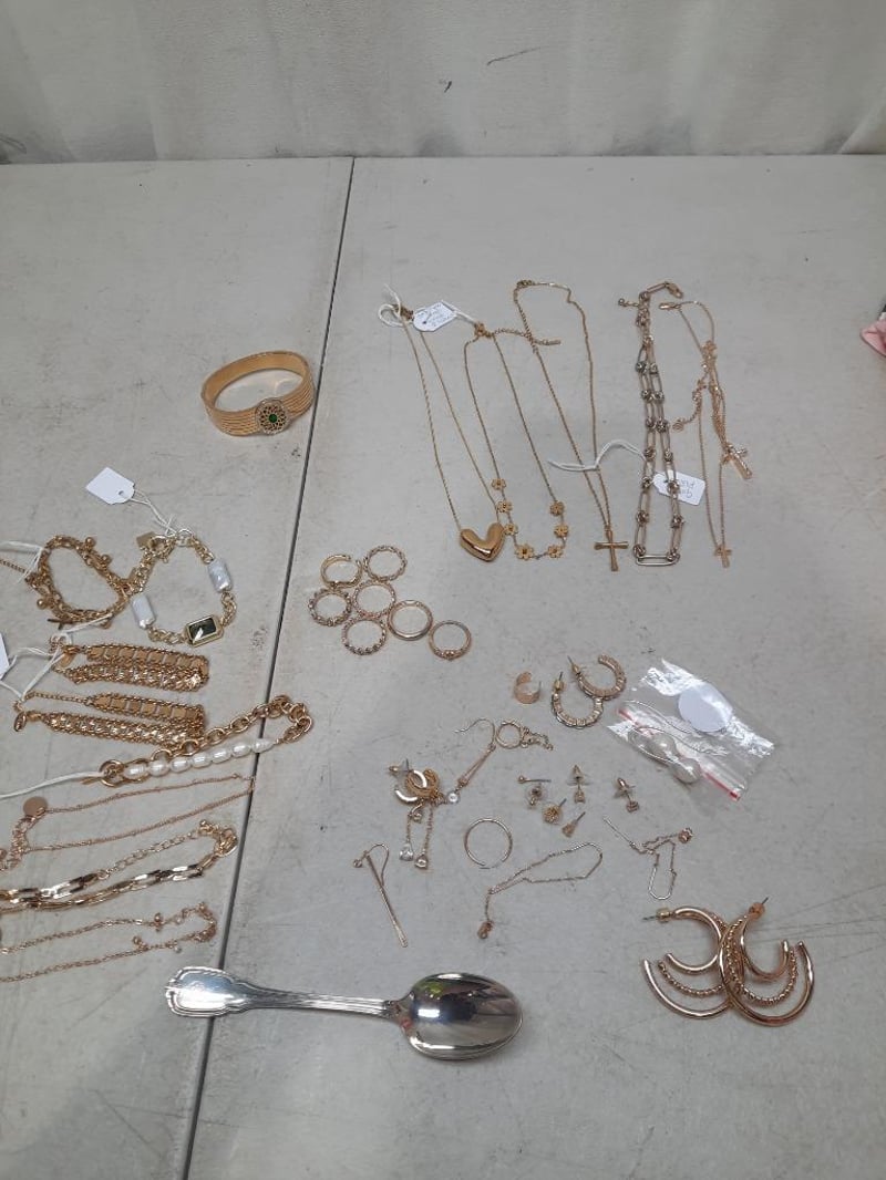 Assorted bag with custome jewellery, 1x pair of silver pearl earrings, 1x spoon Palazzo Versace