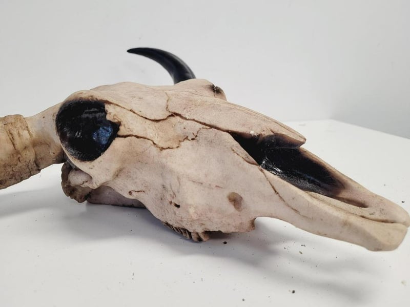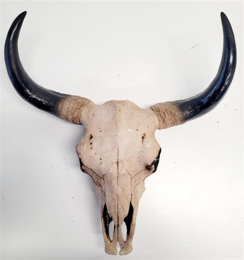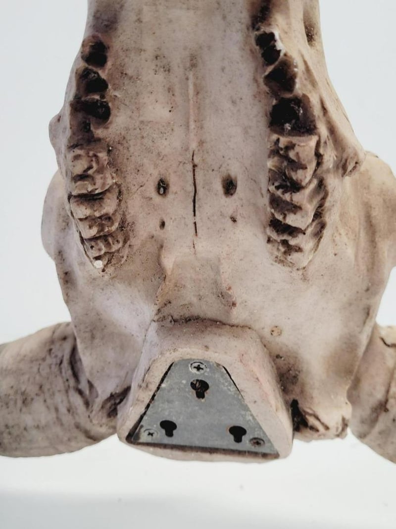 BUFFALO SKULL WITH METAL BRACKET BEHIND