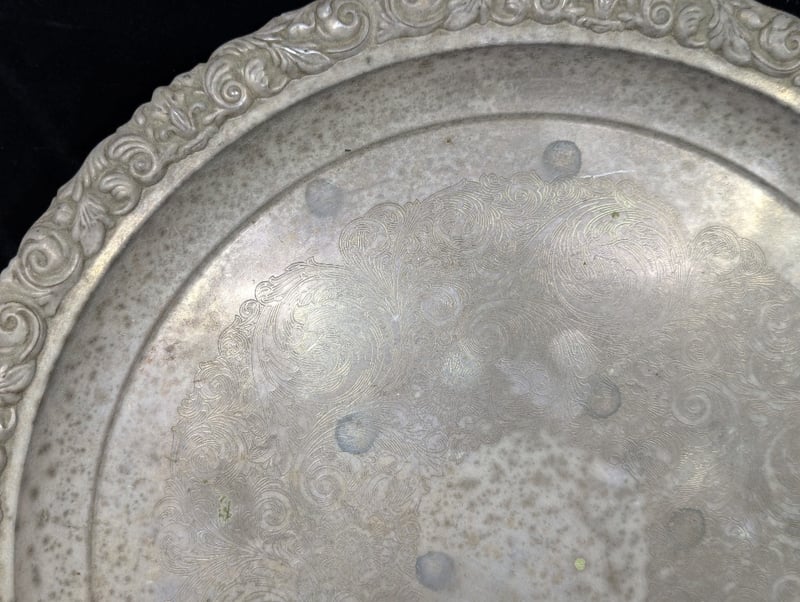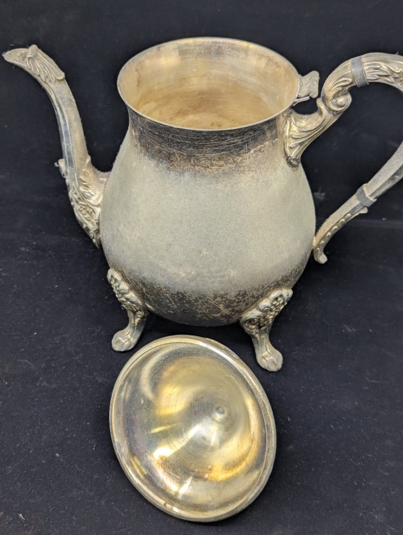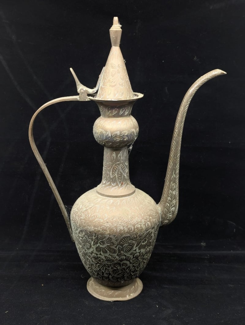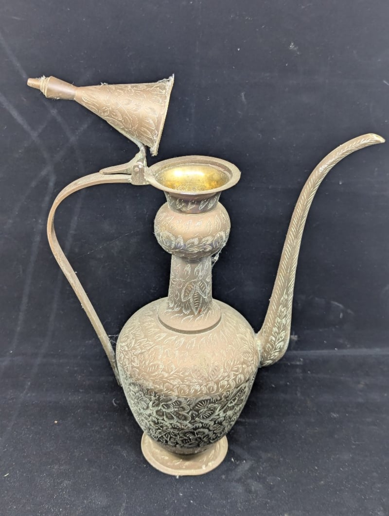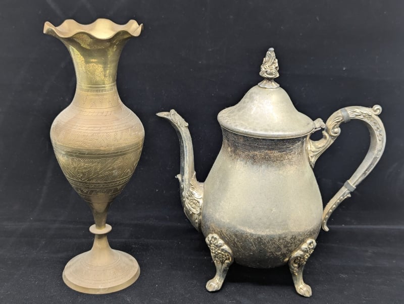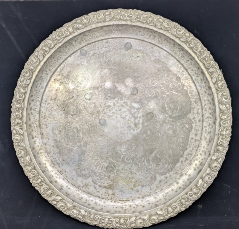COLLECTION OF DECORATIVE TABLEWARE ITEMSMetal Construction, Items Include Tray, Two Pots, Two Teapots, Vase, Tray Diameter: 41Cm, Teapot Heights Range From Approx: 22Cm - 38Cm,Tray, Teapot And Vase Feature Engraved Floral Style Designs On ExteriorLid Of Smaller Teapot BrokenCondition: Good - Refer To Images9B587862+2