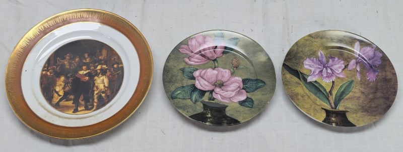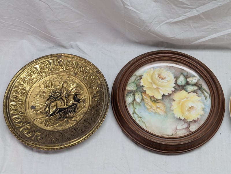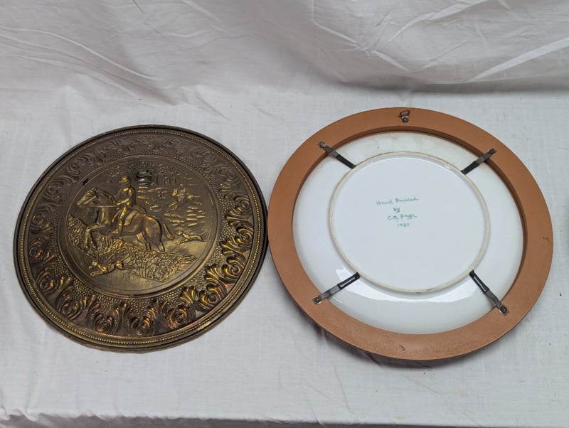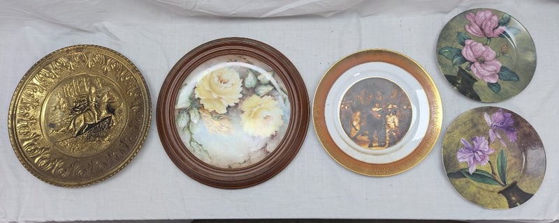 COLLECTION OF DECORATIVE PLATES Various Styles And Designs Including Floral Pattern, C.M.Page Hand Painted Plate In Timber Frame, Pressed Metal Plate, Etc 11C 587862+6