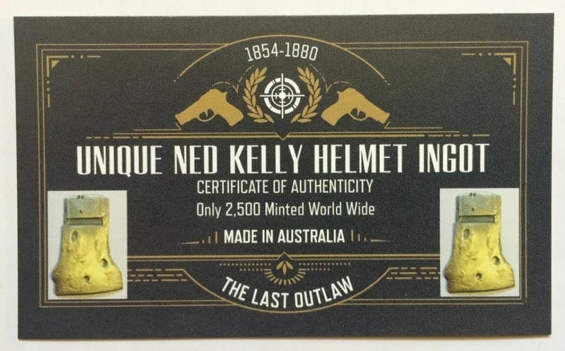 2016 "NED KELLY" HELMET INGOT, 999 24K ANTIQUE GOLD PLATED, OUTLAW, GUNS 27.1G