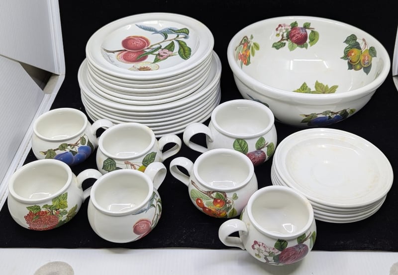 Items Include Fruit And Floral Imagery, Items Include Seven, Fruit Bowls, Side Plates, Plates, Includes Six Plain Saucers