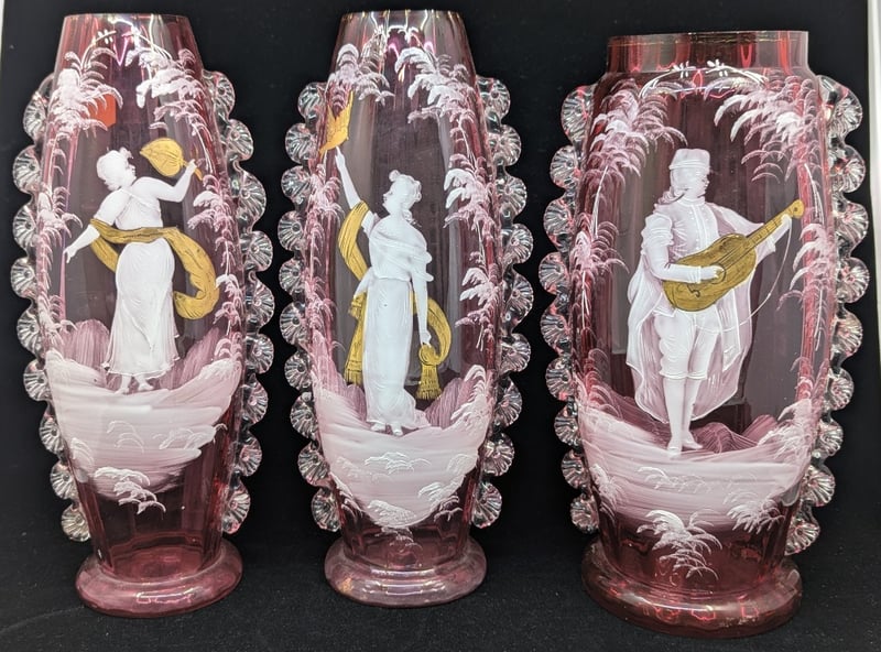 THREE PAINTED DECORATIVE VASES