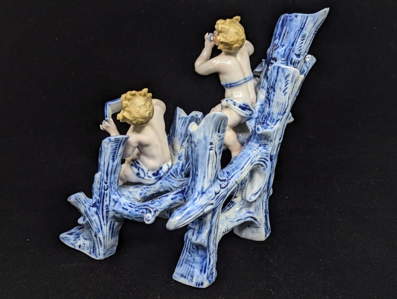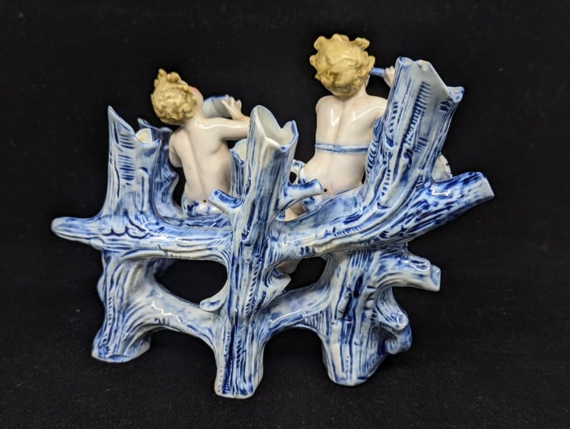 Model Of Cherub Style Figures Sitting On Blue Trees,