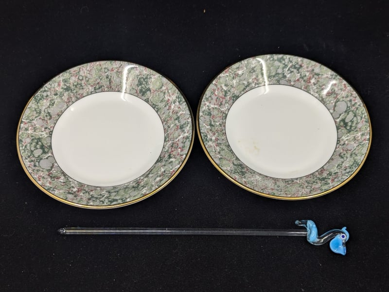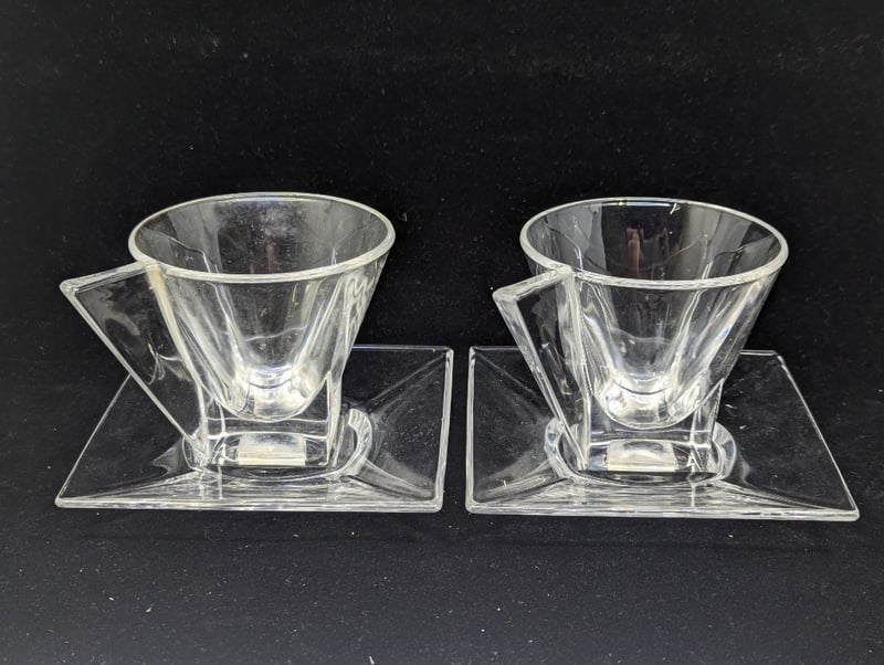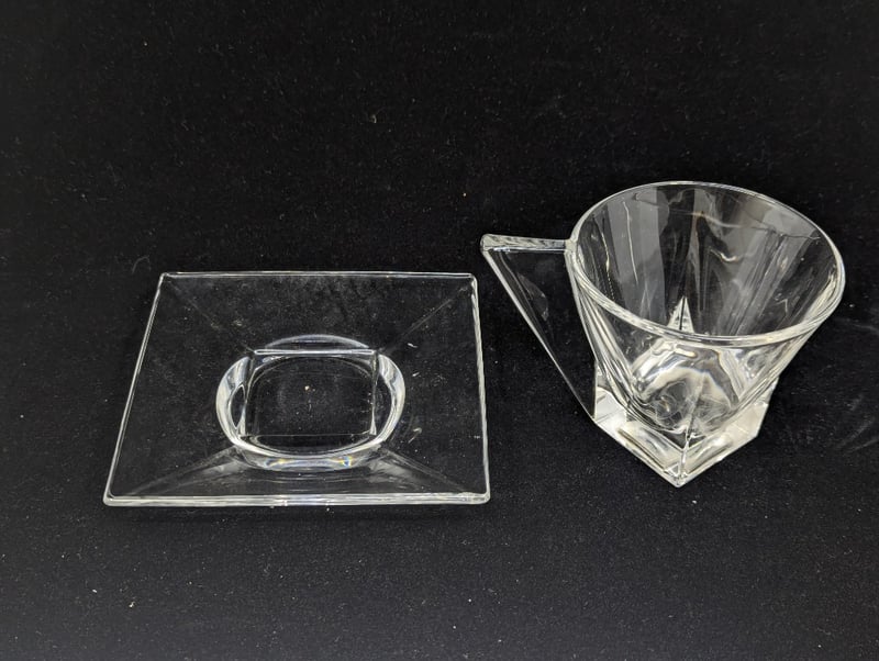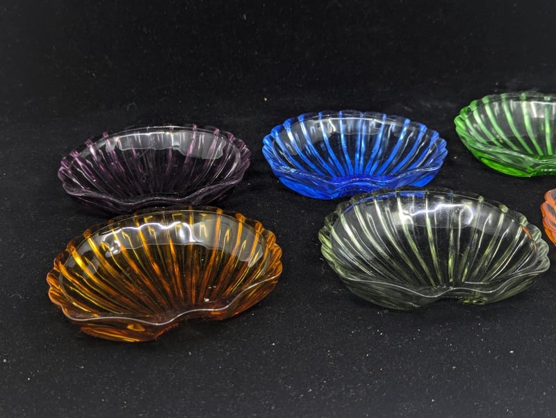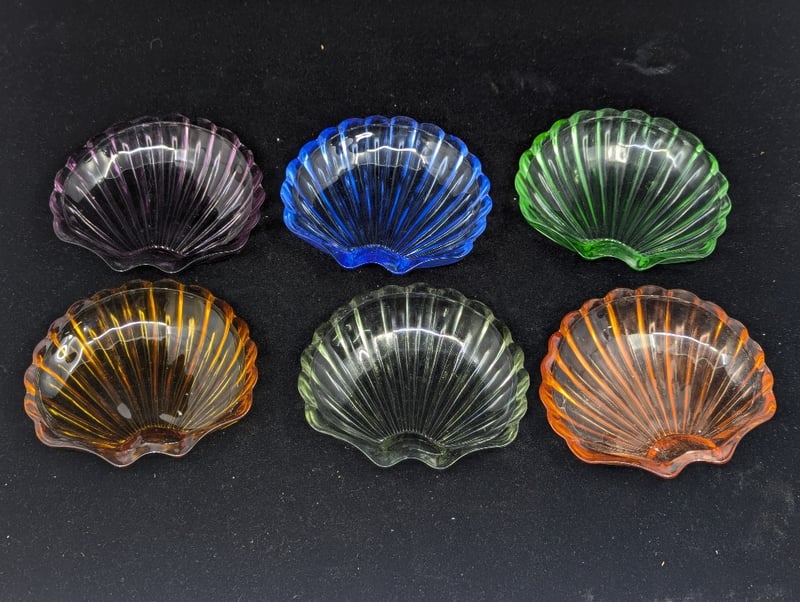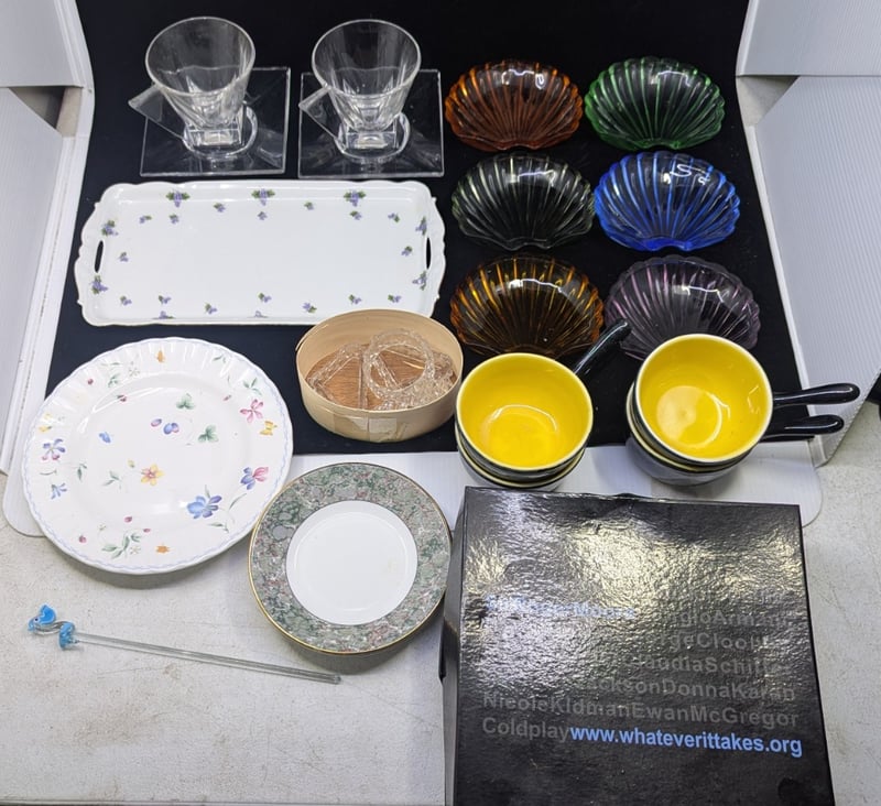 Items Include Glass Retro Style Cup And Saucers, Coloured Shell Style Dish Trays, Serving Tray, Decorative Plate, Drink Mixing Stick With Pelican Design, Etc