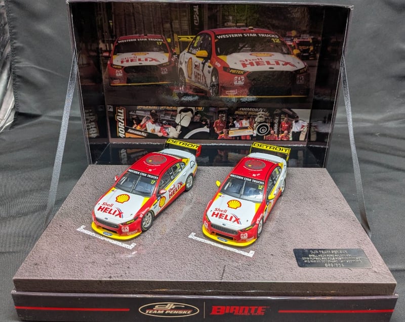 1X 1:43 DJR TEAM PENSKE SHELL HELIX FORD FGX FALCON TWINSET MODEL CARSItem Size: Height: 11cm, Width: 16cm, Depth: 25cm, Weight: 5KgCertificate Of Authenticity Number: 69/504Condition: Good - Refer To ImagesACACIA RIDGE585073+13