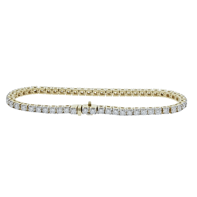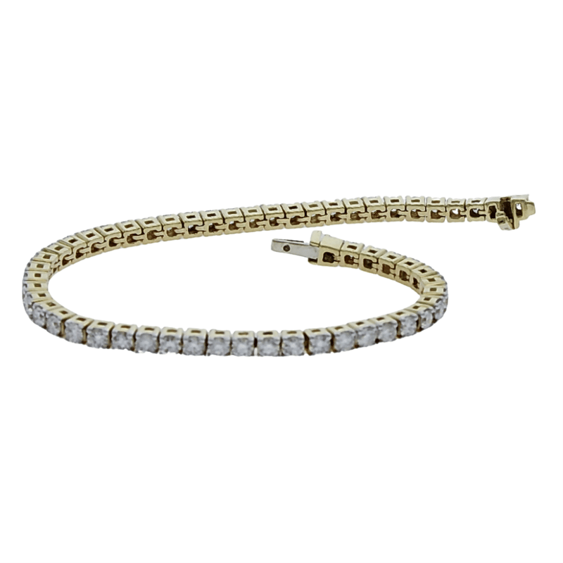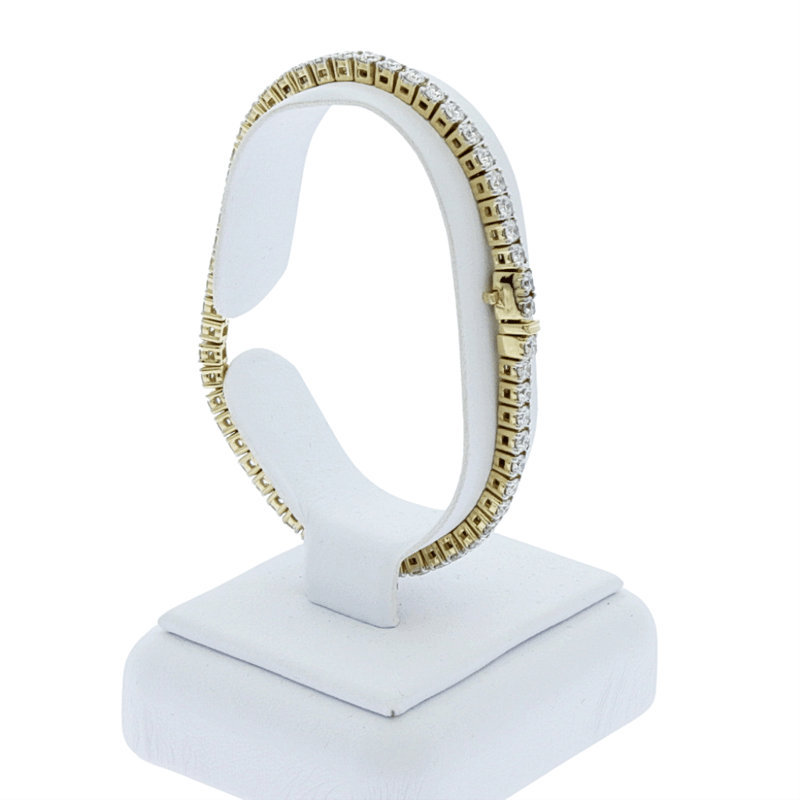 5.06 CARATS YELLOW GOLD LAB GROWN DIAMOND TENNIS BRACELET (Stamped 9K) With A Box Clasp And Safety Latches. The Bracelet Is In A New Condition With A Polish Finish Featuring: Lab Grown Diamonds: 56 Claw Set Round Brilliant Cut Lab Grown Diamonds With A Total Stated Weight Of 56=5.06 Carats. The Colour Is F-G And The Clarity Is Vs. Total Weight Of The Bracelet: 6.85 Grams. Total Carat Weight Of The Lab Grown Diamonds: 5.06 Carats. Length Of The Bracelet: 18Cm. Bracelet Weight 13.50 Grams Condition: Good - Refer Images 0488979+74