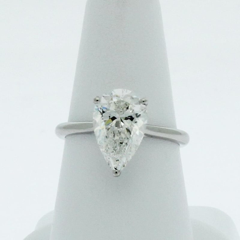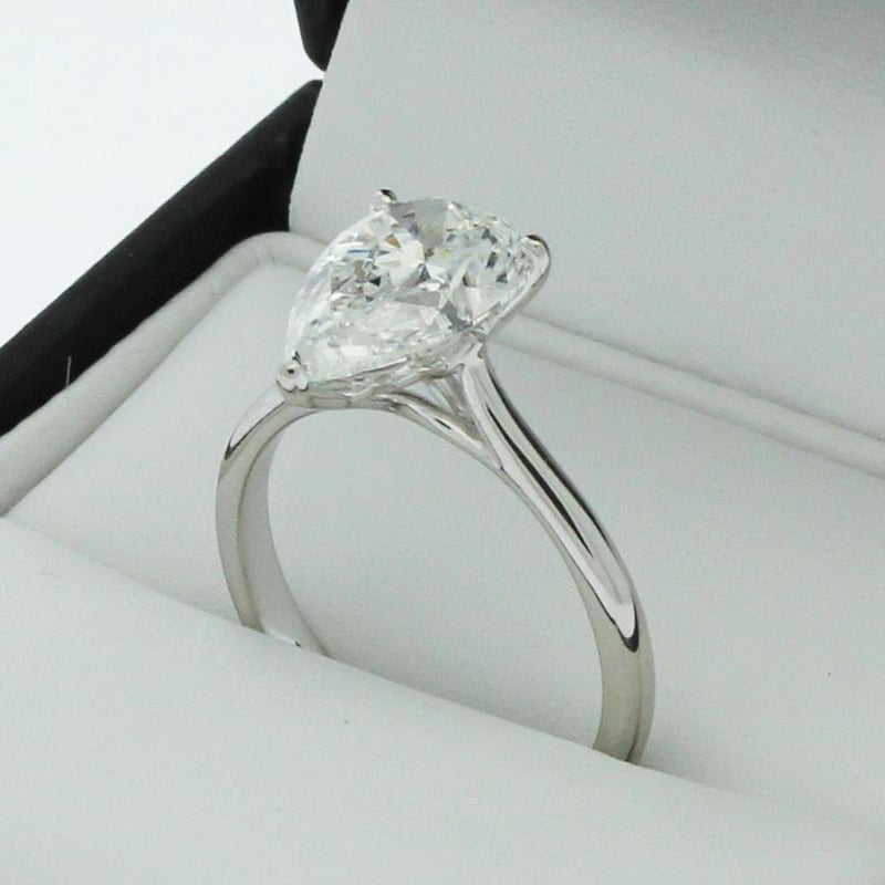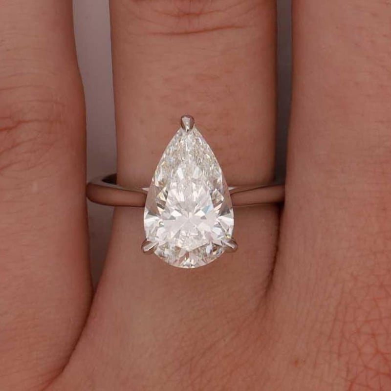 5.01 CARATS PEAR PLATINUM DIAMOND SOLITAIRE RING IGI CERTIFIED 5.01 Carat Pear Brilliant Diamond G/Vs1 Igi Certificate # Lg 717590194 Laser Inscribed : Labgrown Igi Lg 717590194 Cut : Excellent Polish : Excellent Symmetry : Excellent Flourescence : Non Type : Cvd Ring Finger Size N Ring Weight 5.90 Grams Condition: Good - Refer Images 0488979+94