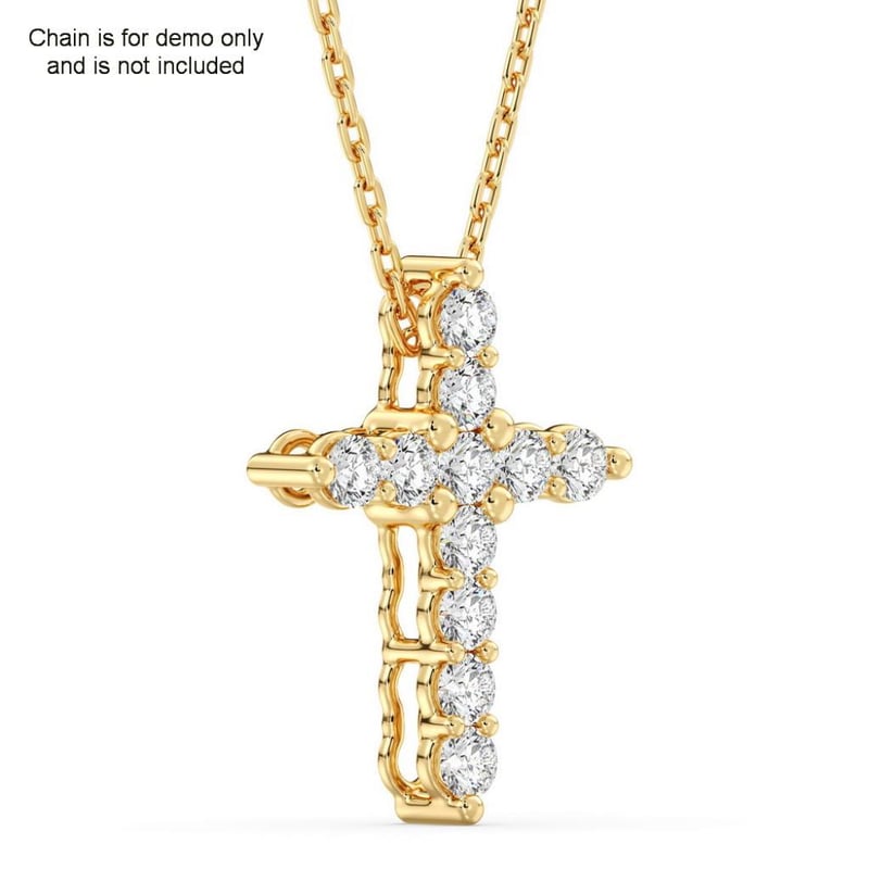 1.05 CARATS YELLOW GOLD LAB GROWN DIAMOND CROSS PENDANT (Stamped 9K ) The Pendant Is In A New Condition With A Polish Finish Featuring: Lab Grown Diamonds: Elven Claw Set Round Brilliant Cut Lab Grown Diamonds With A Total Stated Weight Of 11 =1.05 Carats. Diamond Colour Is F-G And The Clarity Is Vs. . Total Carat Weight Of The Diamonds = 1.05 Carats. Condition: Good - Refer Images 0488979+89
