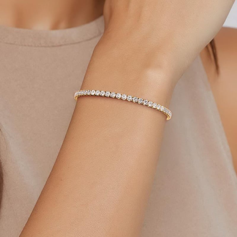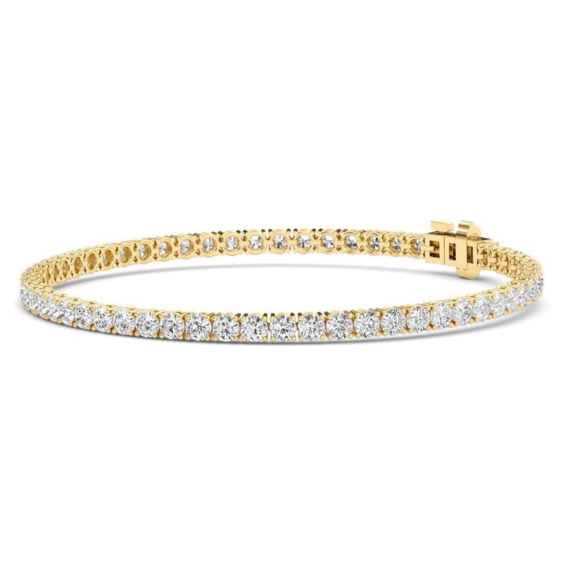 10.04 CARATS YELLOW GOLD LAB GROWN DIAMOND TENNIS BRACELET(Stamped 18K) With A Box Clasp And Safety Latches. The Bracelet Is In A New Condition With A Polish Finish Featuring: Lab Grown Diamonds: 45 Claw Set Round Brilliant Cut Lab Grown Diamonds With A Total Stated Weight Of 45=10.04 Carats. The Colour Is F And The Clarity Is Vs. Total Carat Weight Of The Lab Grown Diamonds: 10.04 Carats. Length Of The Bracelet: 18Cm Condition: Good - Refer Images 0488552+105