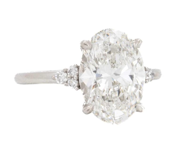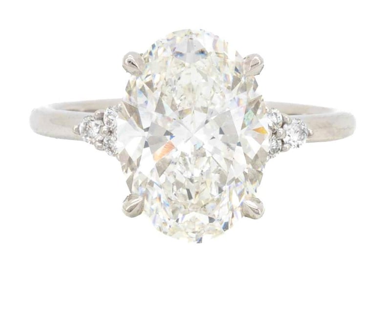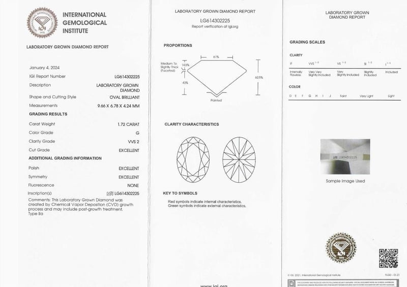 1.81 CARATS PLATINUM PT950 DIAMOND ENGAGEMENT RING IGI CERTIFIEDCentre Diamond = 1.72 Carat Oval Brilliant Diamond G/Vvs2Igi Certificate # Lg 614302225Laser Inscribed : Labgrown Igi Lg 614302225Cut : ExcellentPolish : ExcellentSymmetry : ExcellentFlourescence : NonType : CvdShoulder Diamonds 6 Diamonds = 0.09 CaratsRing Finger Size NRing Weight 4.00 Grams Condition: Good - Refer Images 0488552+93