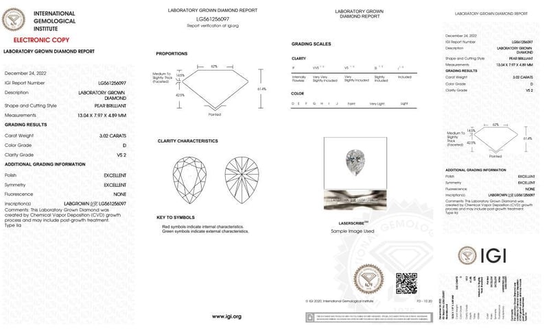 Please note that while all lab grown diamonds listed include certification, the report number or identification may vary upon arrival. This is due to standard manufacturing and batching processes. However, the diamond’s specifications — including carat, color, cut, and clarity — will match or may even exceed those advertised.