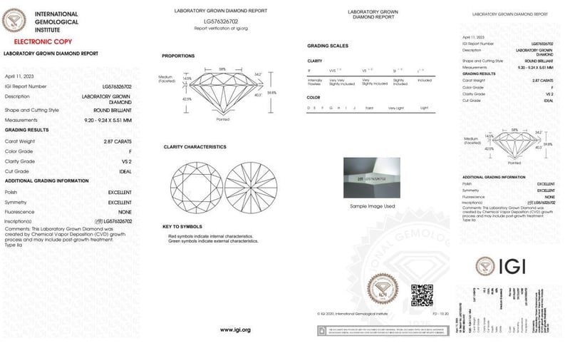 Please note that while all lab grown diamonds listed include certification, the report number or identification may vary upon arrival. This is due to standard manufacturing and batching processes. However, the diamond’s specifications — including carat, color, cut, and clarity — will match or may even exceed those advertised.