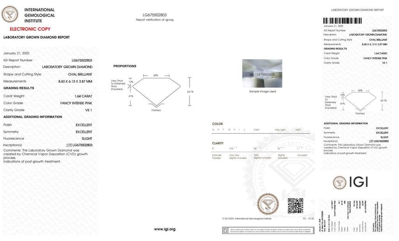 Please note that while all lab grown diamonds listed include certification, the report number or identification may vary upon arrival. This is due to standard manufacturing and batching processes. However, the diamond’s specifications — including carat, color, cut, and clarity — will match or may even exceed those advertised.