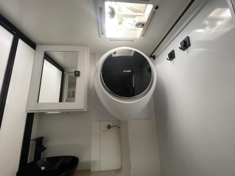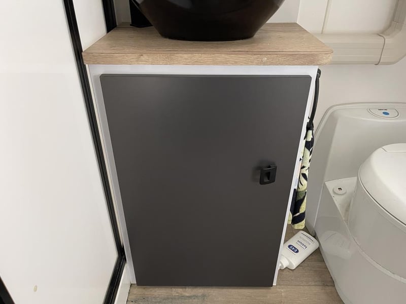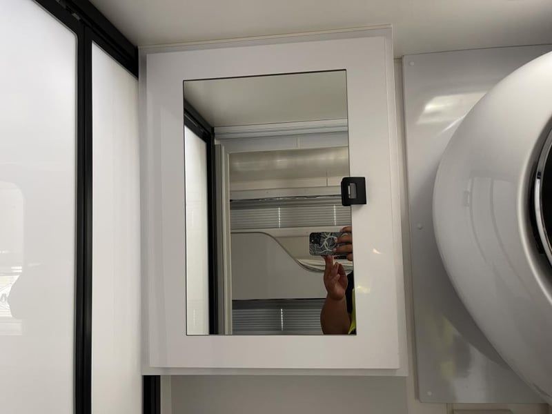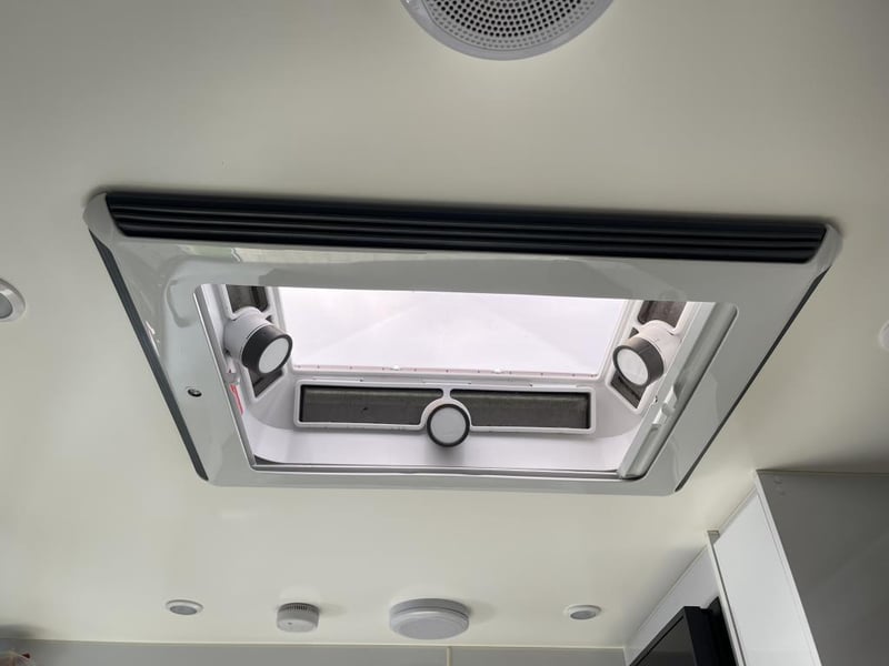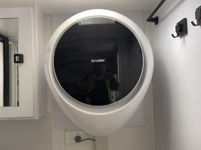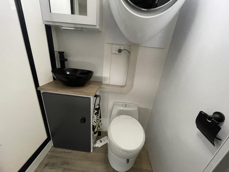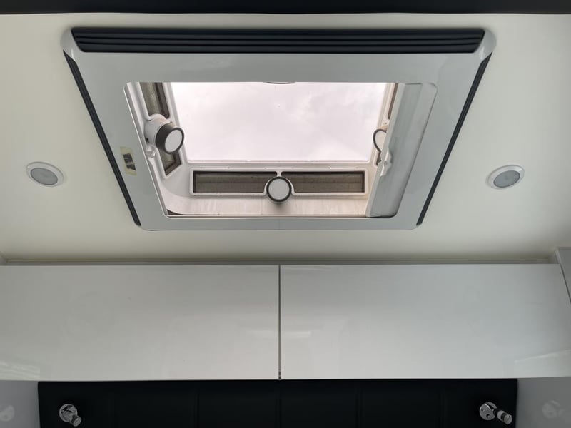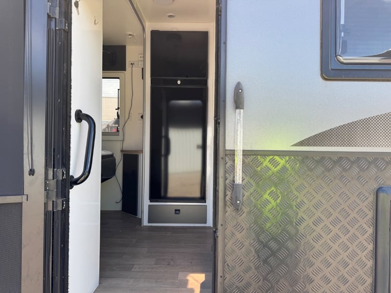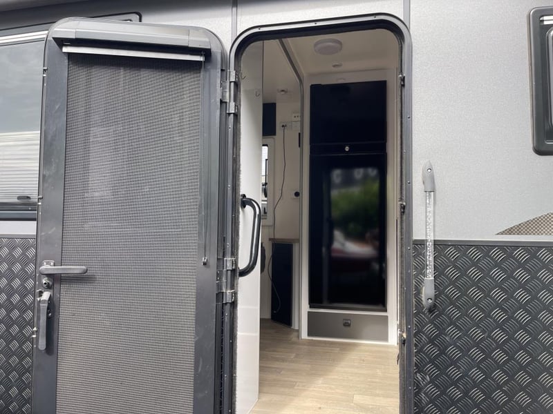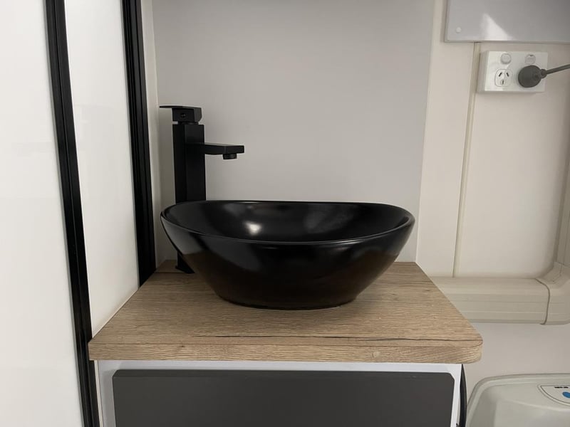 This caravan’s design prioritises convenience and social interaction, with a straight door-side kitchen for engaging meal preparations and a space-efficient open plan bathroom, making it an ideal choice for families or groups who appreciate both style and functionality on their travels.