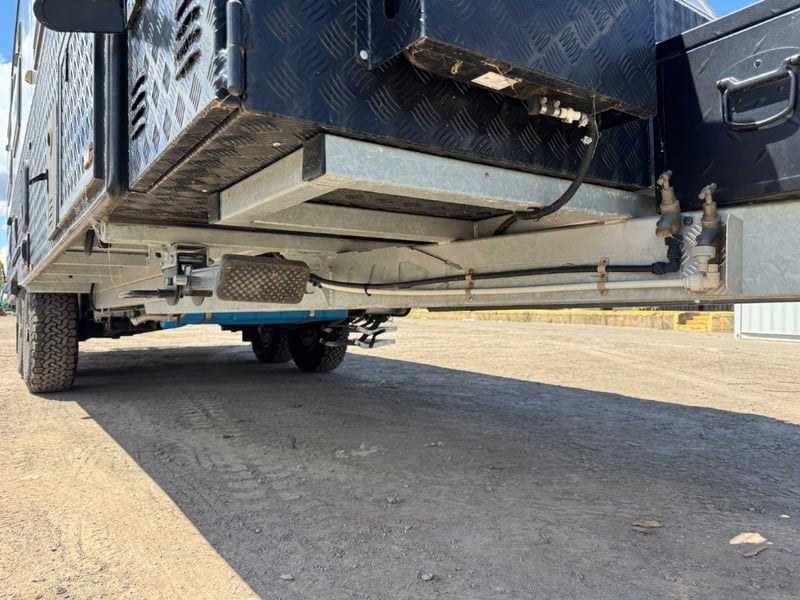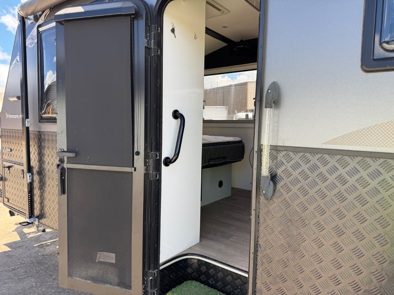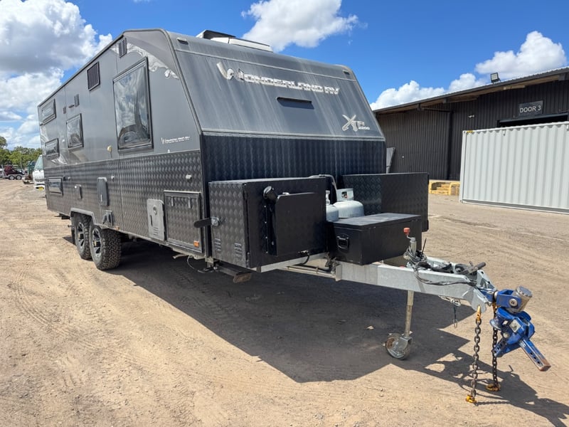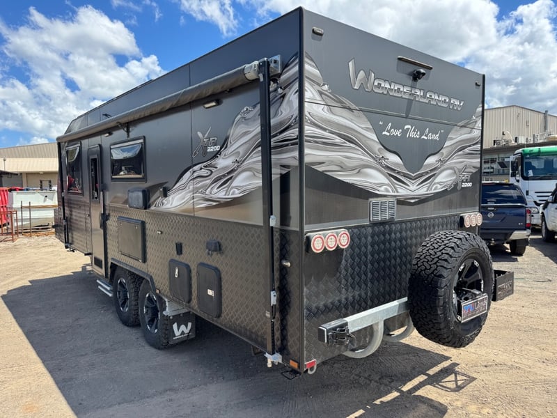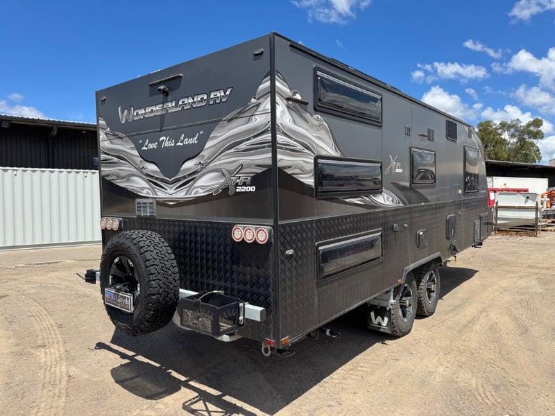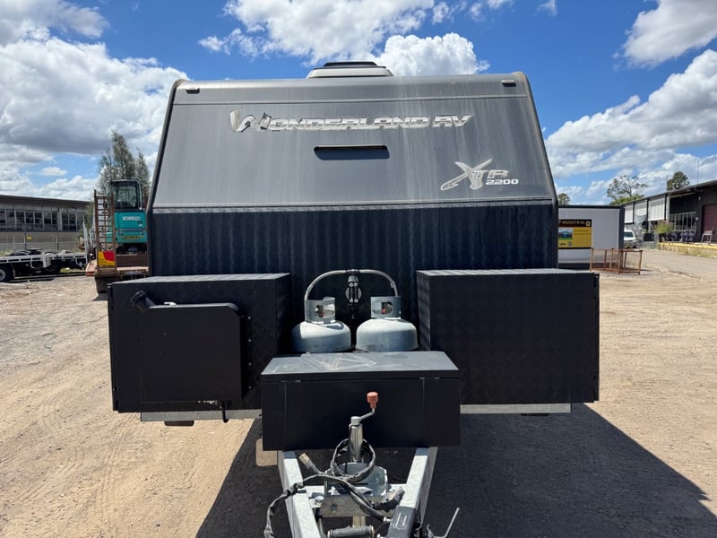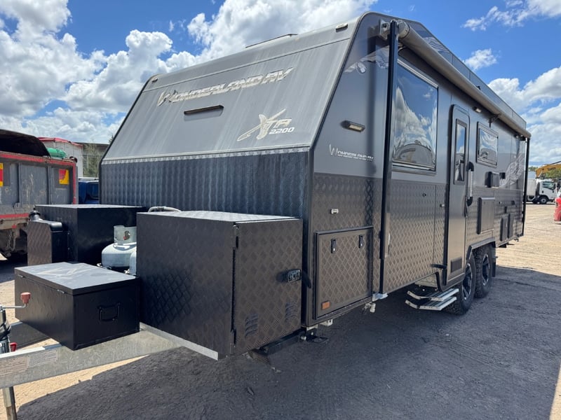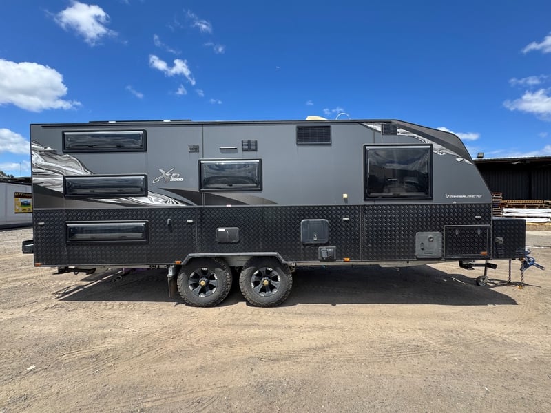 Description: The XTR XT2200F-B3 caravan merges luxury with practicality, featuring a north-south island queen bed with a plush pillow top mattress, ensuring comfort after a day of adventure. It excels in storage, offering a 670L tunnel boot and a 650L under-bed space, paired with an L-shape lounge that easily transforms for additional sleeping arrangements.