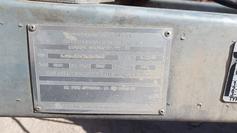2022 Brian James Trailer Plant Trailer Year: 2022 Make: Brian James Model: Plant Trailer Body: Trailer Colour: Silver Configuration: Dual Axle Suspension: Leaf VIN: SJB543GBPND049598 ATM: 3500KG Tare: 680KG Trailer length: APPROX 4.5m Trailer width: APPROX 2.8m Notes: trailer has a front LHS bent wheel hub