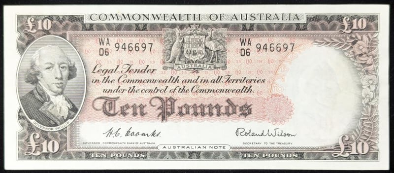 COMMONWEALTH OF AUSTRALIA TEN POUND BANKNOTE SIGNED BY COOMBS/WILSON